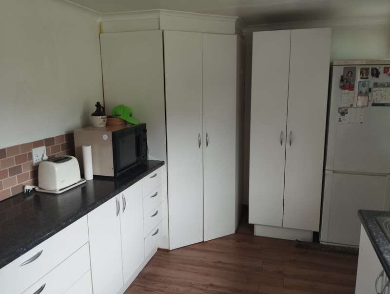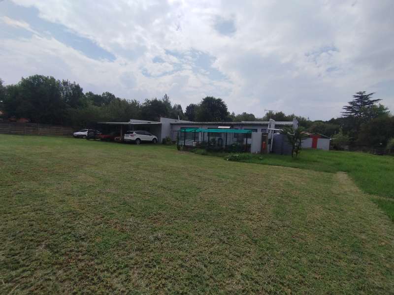 Lovely open-plan airy home on a huge stand in Bromhof. Ideal for a business from home, e.g., electric engineering, architectural, etc. Also good to be used as a creche or after-school center with ample space to have a play-ground. This property offers a neat, well maintained two-bedroom home with spacious, open plan living areas, full bathroom, double garage and swimming pool. The living areas lead out onto a patio by an average size swimming pool, ideal to cool off on hot summer days. The modern open plan Kitchen has a gas stove and -oven, a built-in pantry cupboard and space for three appliances – washing machine, dish washer and tumble dryer, for instance. The two bedrooms provide ample cupboard space. The bathroom has an open shower, bath, basin and toilet. From the house, you have access to the double garage, of which half has been converted into another room which can be utilized for an office, work space or otherwise. The large 2500 square meter stand allows for kids to play around freely. (There are municipal servitudes on the property). There is a vegetable garden, which could also be extended to your needs. There is a big store room as well as three car ports. A 5000L Jojo tank collects rain water. A secure gas installation provides gas to the stove and geyser. It is in general a safe area, according to recent stats, regularly patrolled by security companies. The house itself is secured by an alarm system, burglar proofing and security gates. This is a great property, with much potential, at the right price. Don’t miss out!