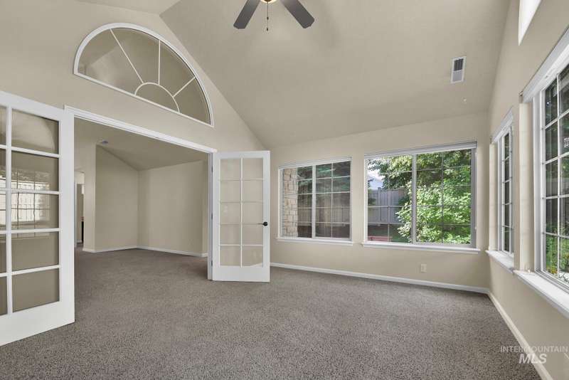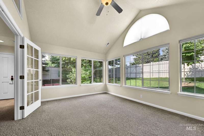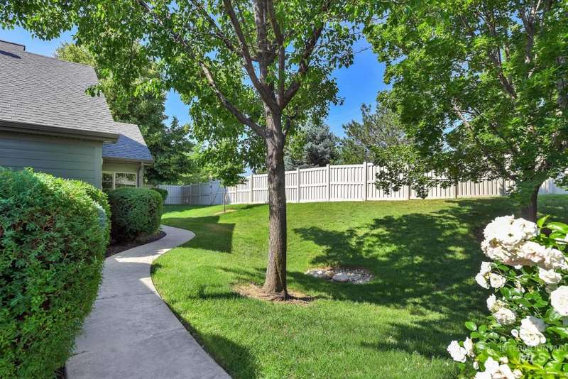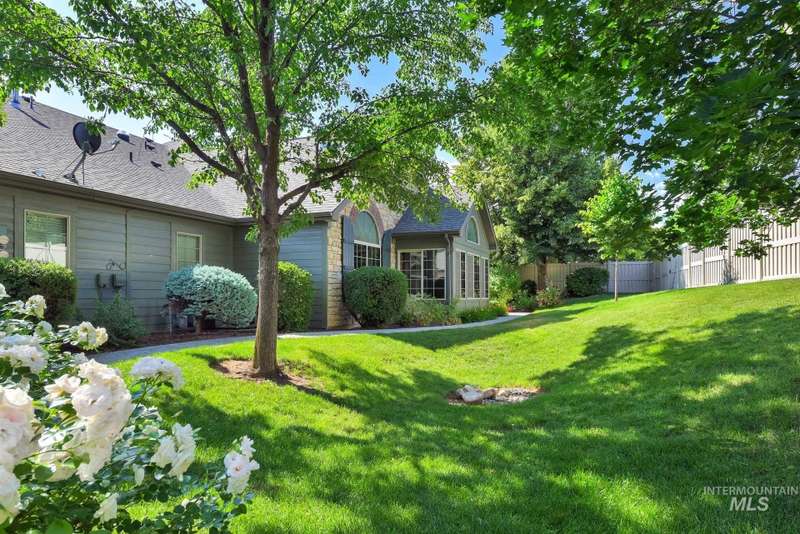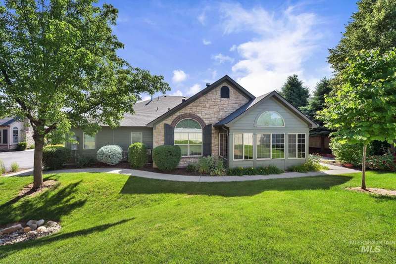 Beautifully maintained, this single-level condo offers comfort, convenience, and updates including a NEW furnace & AC (2024), NEW water heater (2024), and NEW exterior paint (2025). A light-filled sunroom off the entry is sure to be a favorite retreat. The spacious plan lives large with a generous Primary Suite plus a Guest Bedroom with adjacent full bath that feels like a private Guest Suite—ideal for visitors or multi-gen living. Step outside to a private patio overlooking green space, offering privacy, a peaceful outlook, & a natural buffer from the nearby street. Located in The Orchards at Cloverdale, one of Boise’s most beloved gated communities with English Cottage architecture & lush landscaping. Vaulted ceilings, a sun tunnel, stone surfaces, utility sink & abundant storage add appeal. Amenities include a clubhouse with fitness room, gathering room & kitchen, plus an outdoor pool. HOA covers water, sewer, trash, landscaping, snow removal, and some exterior maintenance. (Some photos virtually staged.)