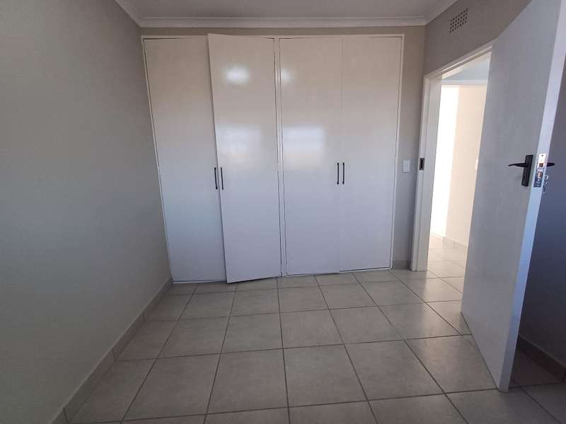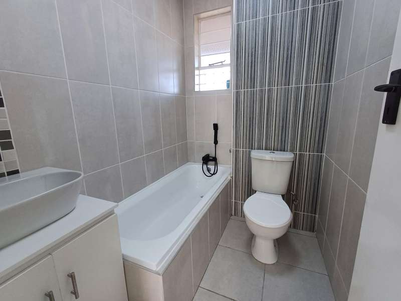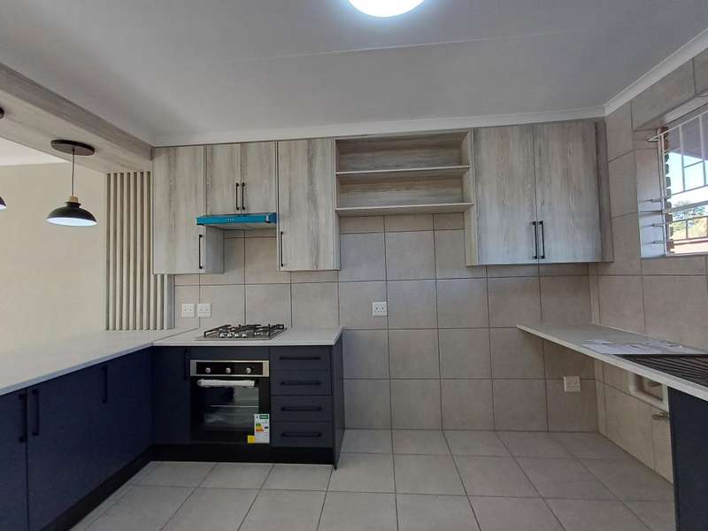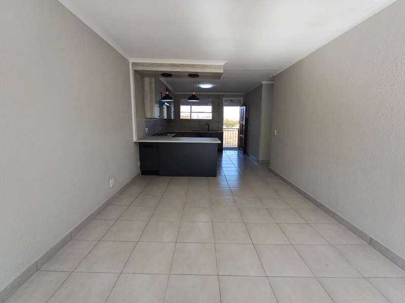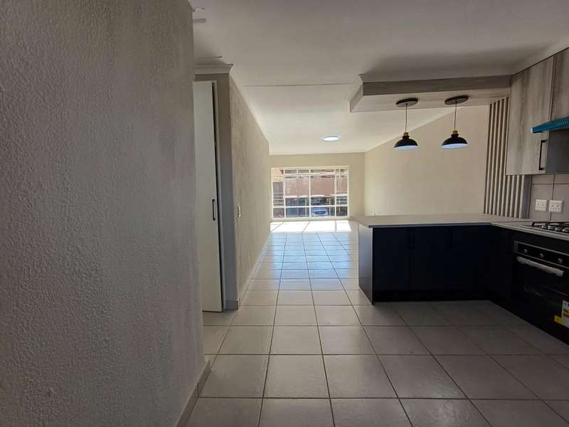 Beautifully renovated upstairs townhouse Open plan kitchen with granite tops, gas hob, under counter electric oven & extractor fan. Loads of cupboard space space for all appliances Open plan lounge and dining room Two well-sized bedrooms, fitted with plenty cupboards for your storage Modern bathroom with bath, basin & loo One under cover parking One visitors parking Swimming Pool and a Squash Court in the complex
