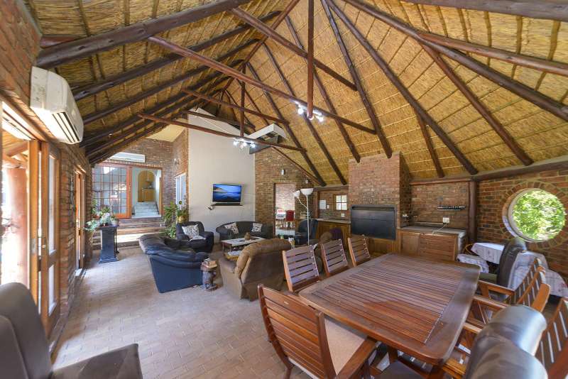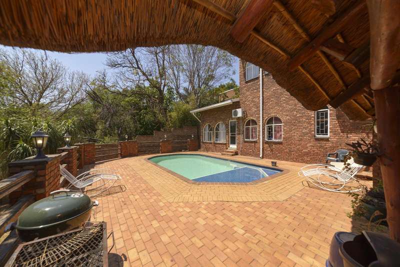 Spectacular Views Ideal Lofty Living ?Çô 5-Bedroom Double-Storey Masterpiece with Breathtaking Views Florauna Viewing Strictly by Private Appointment Only Welcome to a magnificent multi-level residence nestled in the serene and sought-after suburb of Florauna, where spectacular views over Pretoria North?Çöand on clear days, even Wonderboom Airport?Çöset the stage for exceptional living. Perfectly designed for the extended family who values space, comfort, and entertaining, this expansive 5-bedroom, double-storey home offers a unique blend of elegance, practicality, and natural beauty. Property Features: Main Residence Grand Entrance Hall with a striking double wooden sleeper door welcomes you into a home of distinction. Multiple living areas across split levels, offering flexibility for formal and informal entertaining. Open-plan lounge and dining room ?Çô spacious, light-filled, and perfect for family gatherings. Well-appointed kitchen with solid oak cupboards, electric stove, extractor fan, and separate scullery. 4 Spacious downstairs bedrooms, each with built-in cupboards and air conditioning. Main bedroom boasts a walk-in closet, luxurious en-suite with bidet, and direct access to the sparkling blue pool. 2 Additional upstairs bedrooms, one opening onto a scenic balcony with panoramic views. 3 Full bathrooms throughout the home, tastefully appointed and generously sized. Entertainer?ÇÖs Dream The ultimate enclosed thatch Lapa, featuring: Oversized built-in braai Beautiful wooden cupboards and generous seating Direct access to a sprawling patio and inviting pool, ideal for unforgettable gatherings Additional Amenities 2 Double automated garages with ceilings, extra storage space, and workbench area Separate laundry room Domestic quarters with private bathroom Dedicated storage room Expansive untouched garden, waiting to be personalized?Çöcomplete with mature trees, including avocado and wild plum varieties A Rare Opportunity This exceptional property is more than just a home?Çöit?ÇÖs a lifestyle waiting to be embraced. With its commanding views, thoughtful layout, and luxurious yet homely ambiance, it?ÇÖs truly a rare gem in Florauna. Don?ÇÖt miss out?Çöcall now to arrange your exclusive private viewing and step into the next chapter of refined family living.