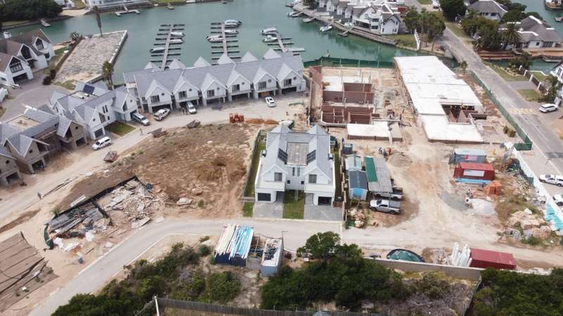 fabulous new development in a secure access controlled area next to The Quays restaurant. Lock up and go and easy living. This unit comprises 3 bedrooms upstairs and 2 bathrooms,(one en suite with a dressing room), guest loo downstairs, lounge, patio with built in braai, kitchen and scullery.