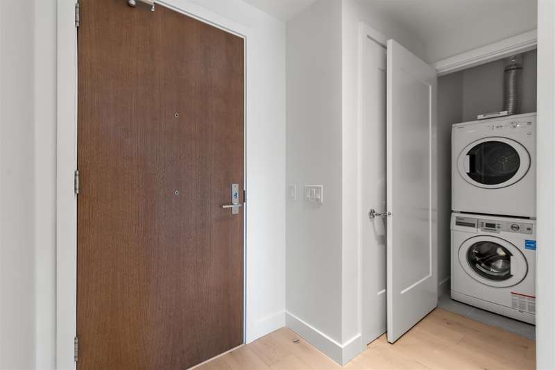 In immaculate, like-new condition! This luxurious, spacious, and functional 2-bedroom, 2-bathroom plus den unit is located in the peaceful Parker building, within Vancouver's highly desirable Oakridge neighborhood. Featuring a 128 sqft outdoor patio perfect for summer BBQs, it’s just steps away from the SkyTrain station and QE Park. The home is equipped with top-of-the-line Gaggenau appliances, engineered hardwood floors, and a stylish modern design. School catchment: Eric Hamber Secondary and Sir William Van Horne Elementary.