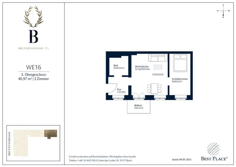 The Wilhelminian style house "Brunnenstraße 171" was built in 1900 and radiates the timeless elegance of the Wilhelminian era with its classic Berlin façade. The ensemble consisting of a front house, side wing and a coach house, this magnificent building offers a total of 20 flats and two commercial units. The flats are partly rented, are accessed via a charming staircase and have 2 to 4 rooms with a living space of 36 to 113 sqm. Balconies and terraces on the courtyard side, including a roof terrace on the upper floor, ensure cosy hours outdoors. The lovingly maintained inner courtyard with bicycle parking spaces not only invites you to relax, but also offers additional respite from the hustle and bustle of everyday life. If you want to invest in the heart of Berlin's Mitte, this is the place for you.