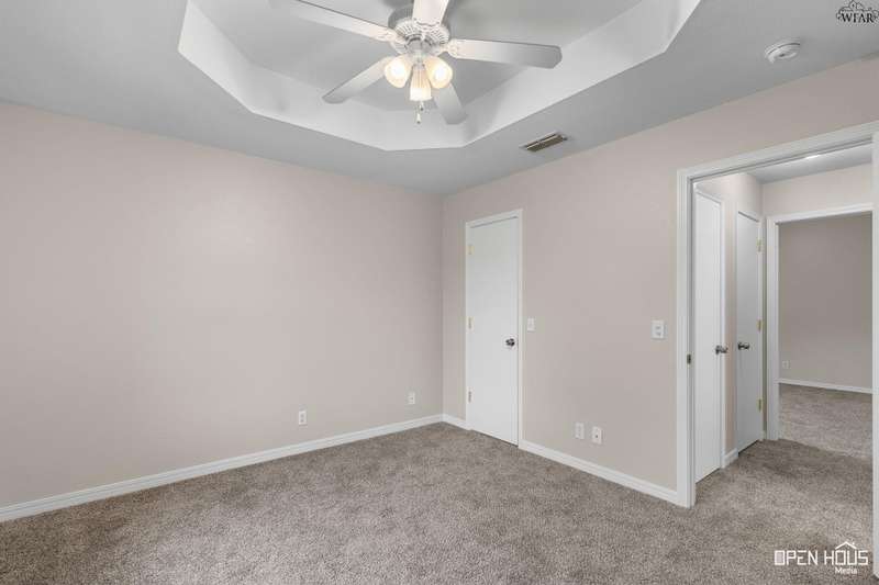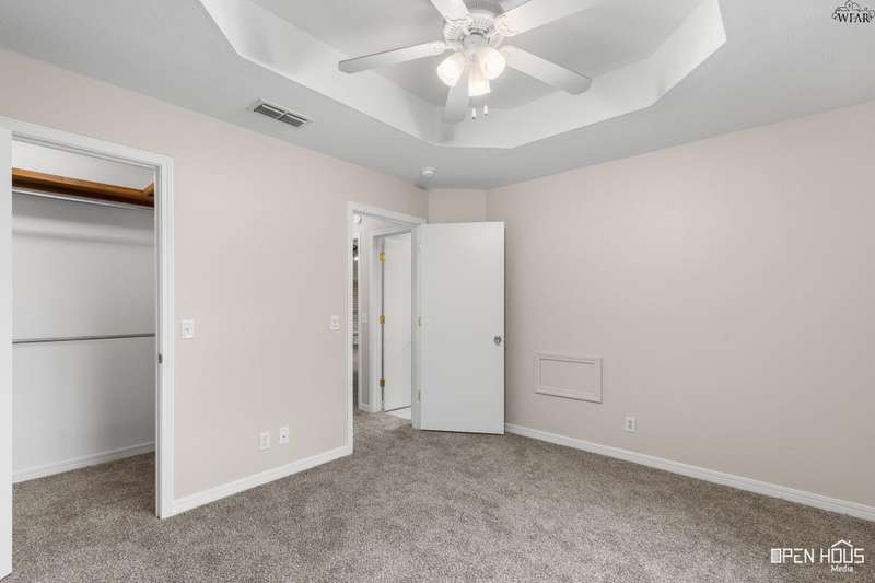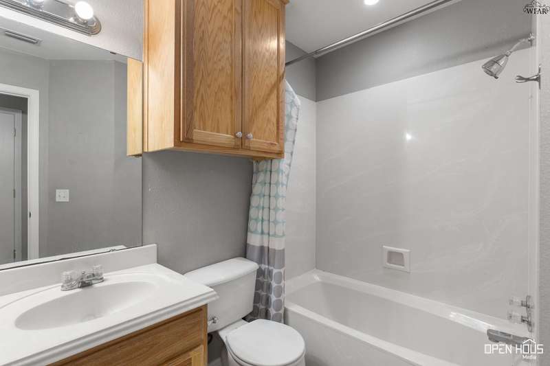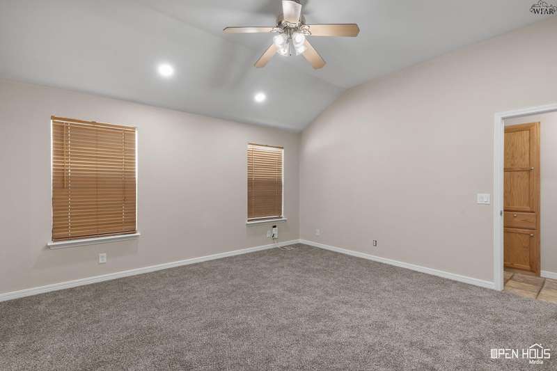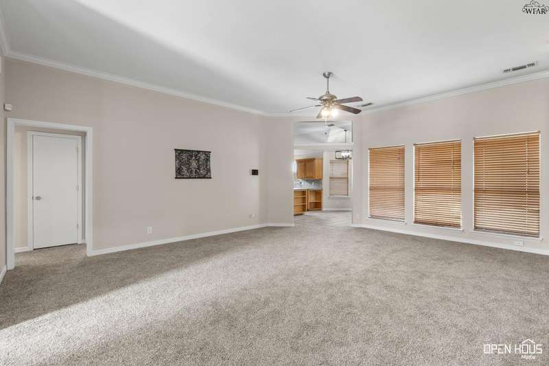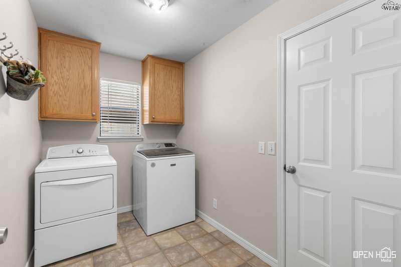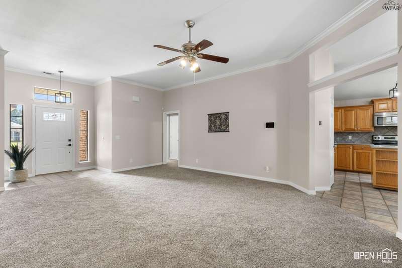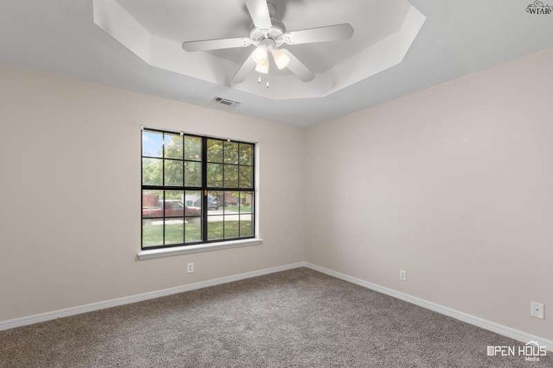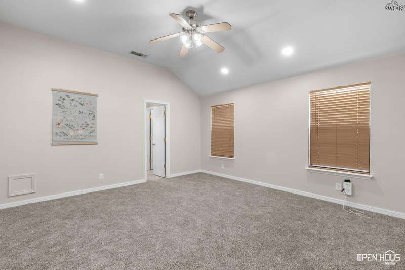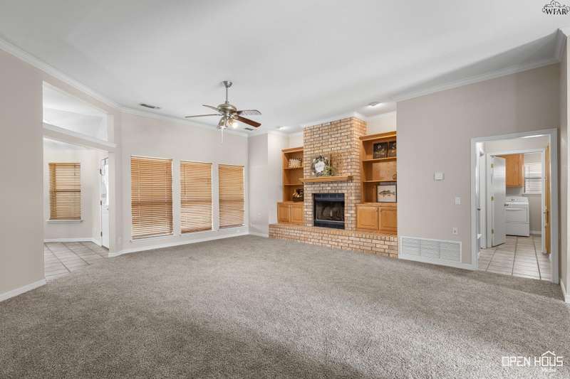 Light and bright, neat and clean! Open concept with energy efficient solar panels to convey. Living area features a wall of windows to the back yard, wood-burning fireplace with built-in shelving on each side. Kitchen corner sink window has a pantry and center island that moves to fit your needs. Isolated primary suite with garden tub, double vanity and 2 walk-in closets. Metal fence. Just minutes from Burkburnett HS and SAFB. Recent carpet, paint, ready for your family to enjoy! Please continue to show!