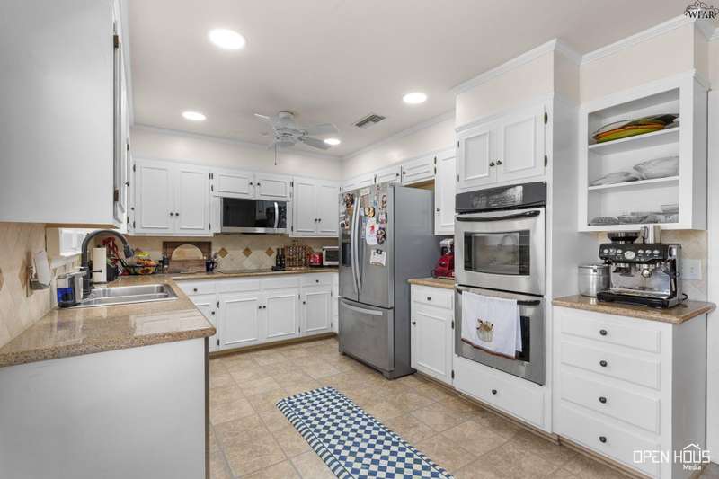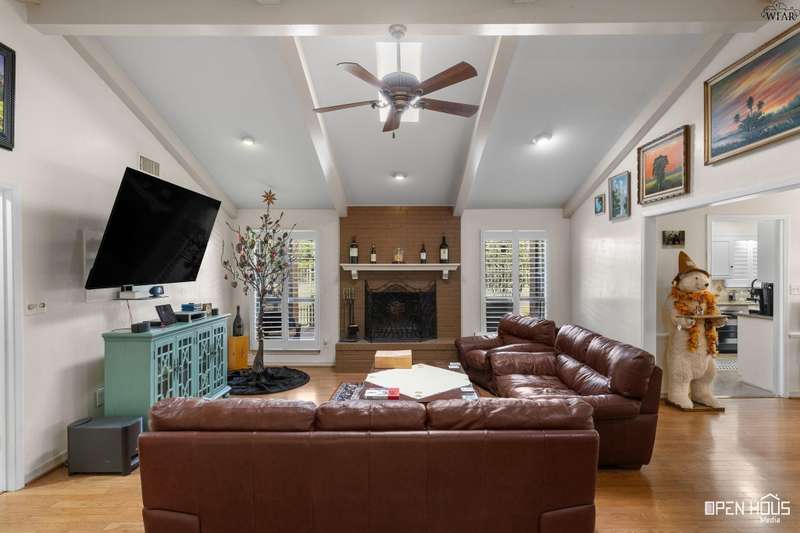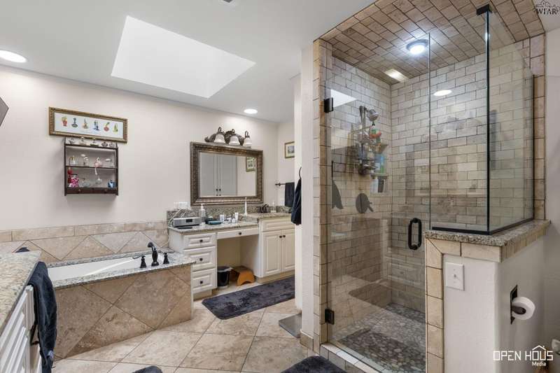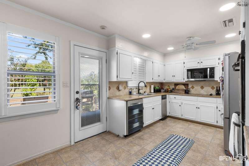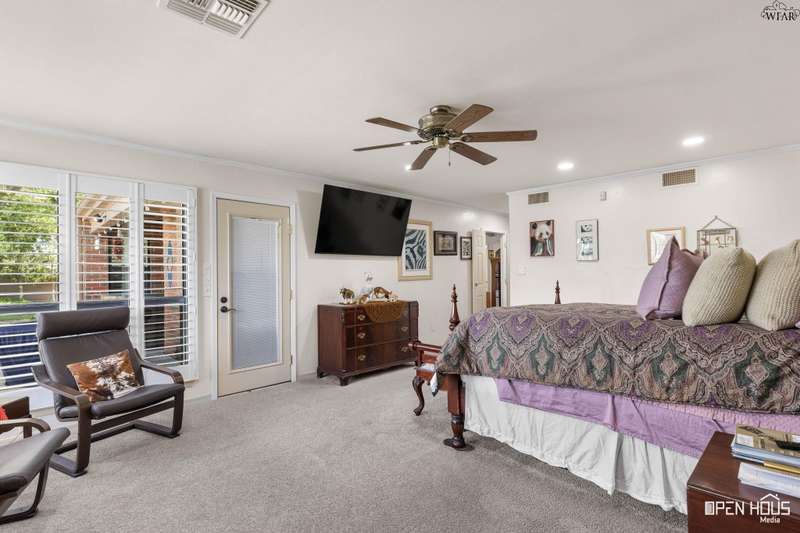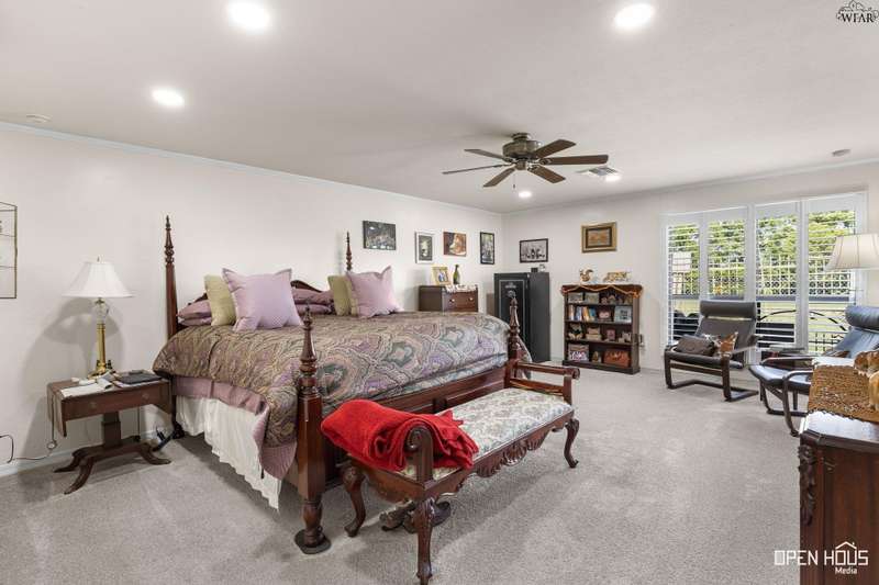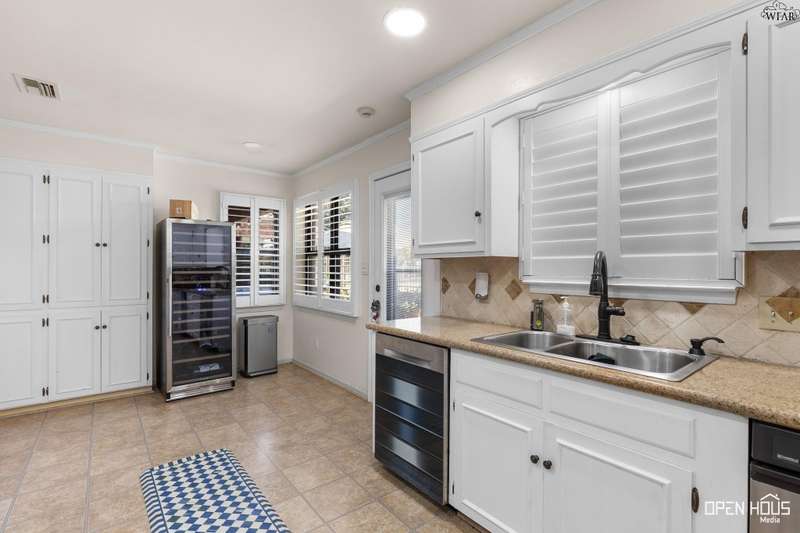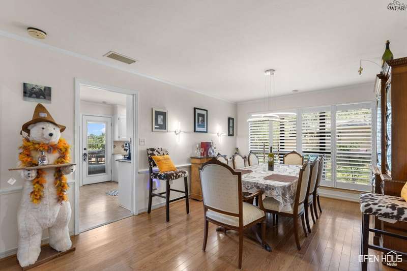 Stunning zero-lot-line property. All the stops pulled on this one! Updated colors and remodeled. 3 generously-sized bedrooms, 3 baths, BR 2 has a private exit and patio. Hardwoods in living, dining, hallway. Plantation shutters throughout. Living has a vaulted ceiling, wood-burning fireplace, view of back patio and Sikes Lake. 4 outside patios. Wet bar, large utility w/sink. Oversized master with private exit to patio, gorgeous bath, his/her vanities, garden tub, stall shower, 2 walk-in closets. A Must see!