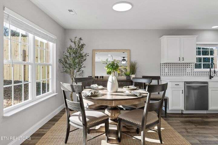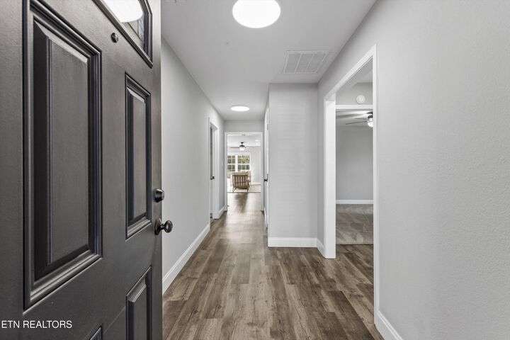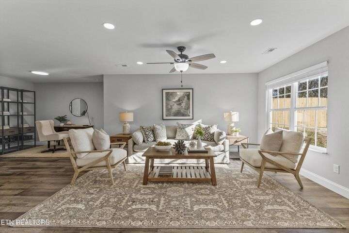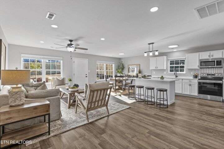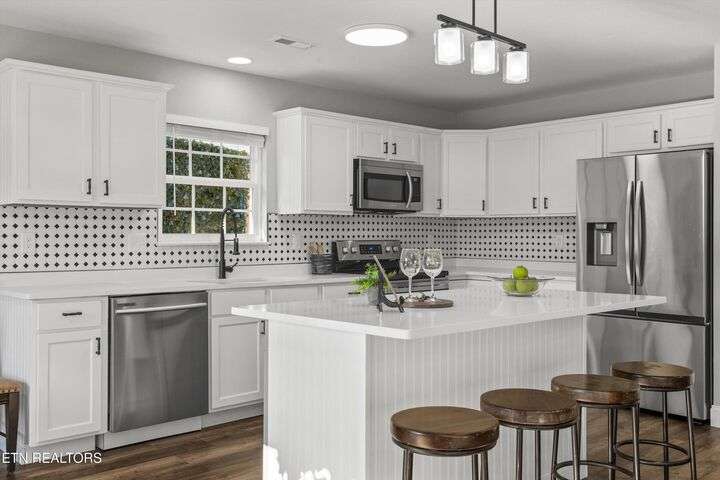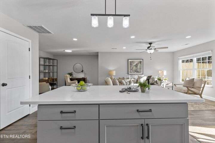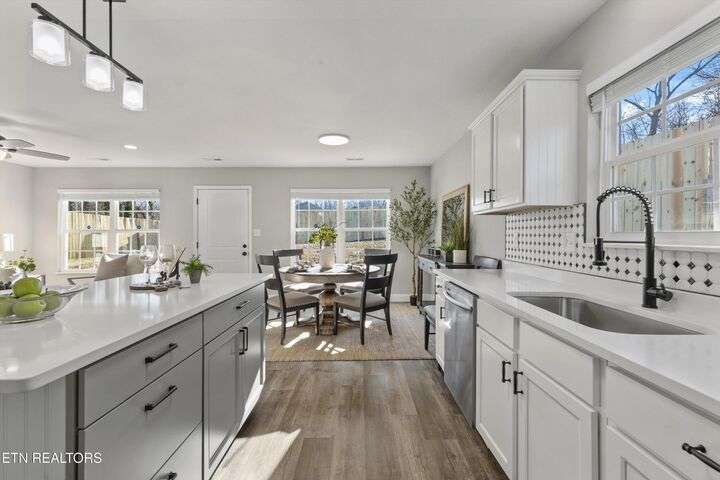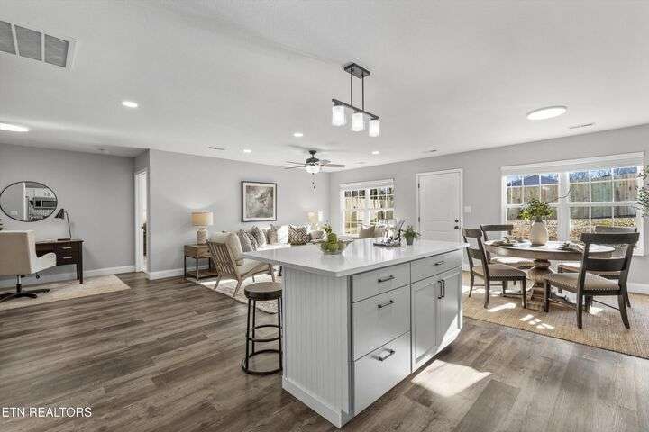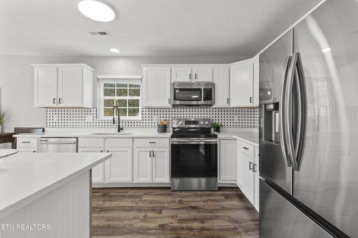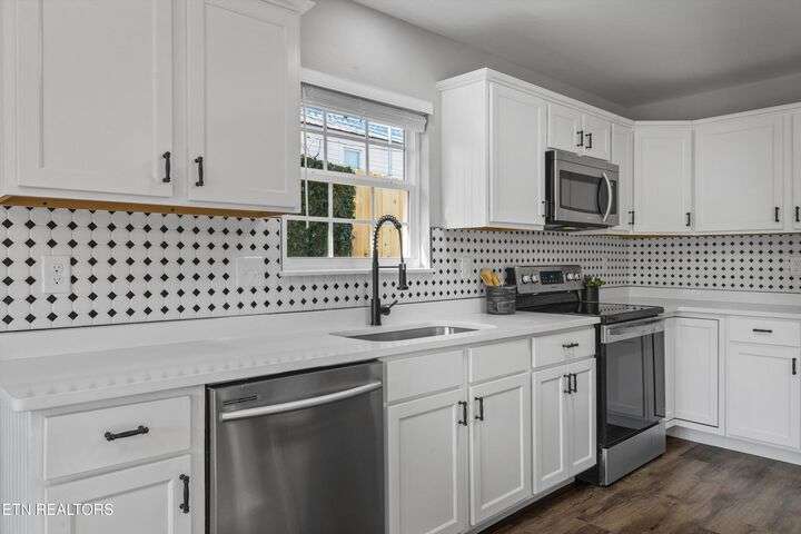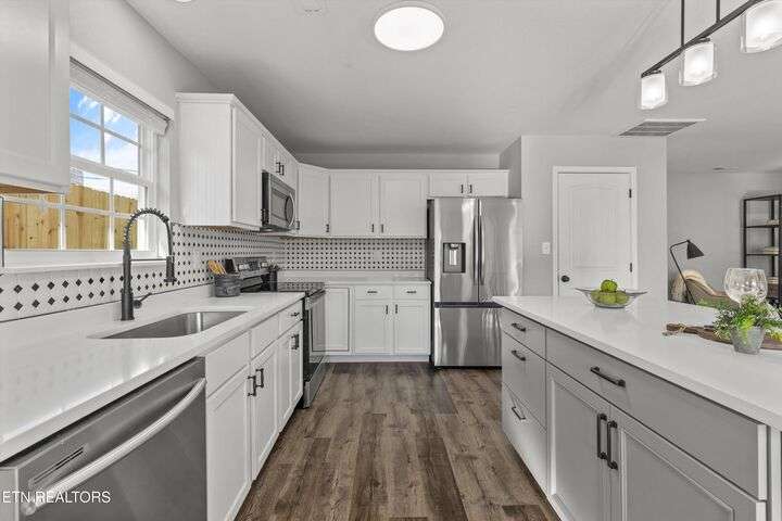 Welcome to this beautifully renovated single-story home in one of Maryville's most charming and walkable neighborhoods. Set along a quiet, tree-lined street with sidewalks, this 2020-built home has been freshly updated and offers 3 bedrooms, 2 baths, and a flexible office or bonus space, designed with modern comfort and thoughtful details at every turn. Step inside and you'll immediately notice the bright, open-concept layout that feels even more spacious than its footprint suggests. The heart of the home is the chef's kitchen, complete with a new suite of stainless-steel Samsung appliances, including a counter-depth French door refrigerator, and a large eat-in island topped with elegant white quartz. The oversized, lighted pantry and abundant cabinetry make both everyday living and entertaining effortless. The primary suite is designed with care and convenience in mind, featuring a beautifully, well-appointed en suite bathroom with a private water closet, a lighted linen closet, and a generous walk-in closet outfitted with custom built ins. The split floor plan ensures privacy, while the ADA compliant 32-inch doorways provide comfortable accessibility throughout. The home also includes a mudroom/laundry area off the garage entrance, complete with built-in cabinets, a granite folding counter, and a washer and dryer that convey. The freshly finished garage flooring adds a clean, polished touch. Outside, the large, fenced backyard offers space for relaxation, play, and entertaining, framed by recently installed eight-foot cedar fencing for privacy. Located just minutes from downtown Maryville, the Great Smoky Mountains, McGhee Tyson Airport, and Blount Memorial Hospital, this property provides convenient access to dining, shopping, and recreation. Nestled in a vibrant area at the forefront of Maryville's continued revitalization. Served by the highly rated Maryville City Schools, this bright and modern home perfectly balances privacy, comfort, and style—an ideal move-in-ready retreat close to everything East Tennessee has to offer. Schedule your showing today before someone else gets to call this cutie home!
