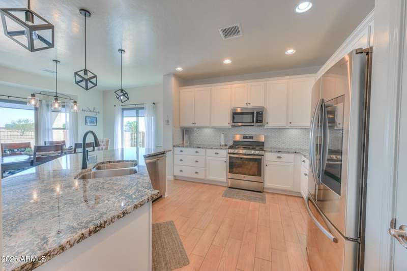Breathtaking mountain views from every corner! This incredible 3BD/2BA, 1,834 sq. ft. home in the scenic Kings Ranch offers classic Arizona elegance and comfort. The beautifully landscaped front yard blends timeless stonework and easy-care desert charm. The open concept design is light and airy, with tall ceilings, stylish flooring, and plenty of space for living, dining, and entertaining. The kitchen is a showstopper with white cabinetry, sleek granite, stainless steel appliances, and a breakfast bar. The primary suite features a walk-in closet and a luxurious bath with dual vanities, separate shower, and garden tub. Guest rooms are generous with a full bath nearby. The three-car garage with epoxy floors is ideal for cars, toys or hobbies. Sunrises and sunsets are amazing from this home!