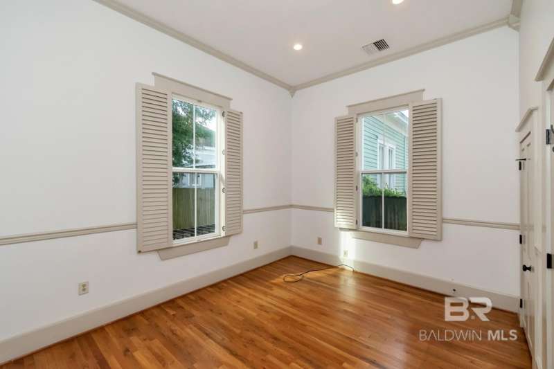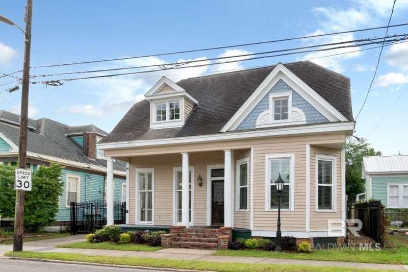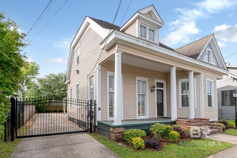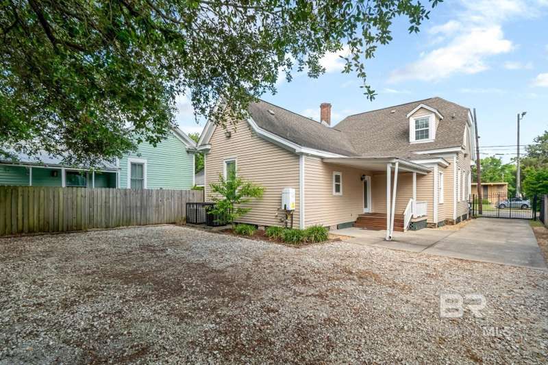 Located in The heart of walkable downtown Mobile, Alabama. Take a stroll to one of the many fine restaurants. No need to cook. Get your 'steps in' before you sit down to enjoy a delicious dinner. Close to theaters, shopping, specialty events (including Mardi Gras & cookoffs), gyms & grocery stores. So many options. This city has so much to offer!! Could be an Office or a home. (Zoned T-5.1 = mixed-use district of medium intensity.) Has been used as both. This home has High Ceilings & Hardwood floors & is set up to move right in or it could be converted back into an office. Main level has a living room, kitchen, dining room and Primary bedroom with its own bath, plus an Additional bedroom & bath. Kitchen is a galley kitchen with 1/2 bath & laundry room with access to the deck, covered patio and fenced yard. Granite Counters & stainless appliances. Refrigerator & new electric stove. Tankless gas water heater. 2 Bedrooms upstairs with another 1/2 bath & room that would be an amazing walk-in closet. Plenty of parking inside the electric gate Replaced in 2025. Don't miss this one!! **Listing Broker makes no representation to accuracy of square footage. Buyer to verify. Any/All updates per seller(s). ** Buyer to verify all information during due diligence.