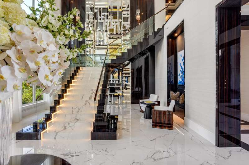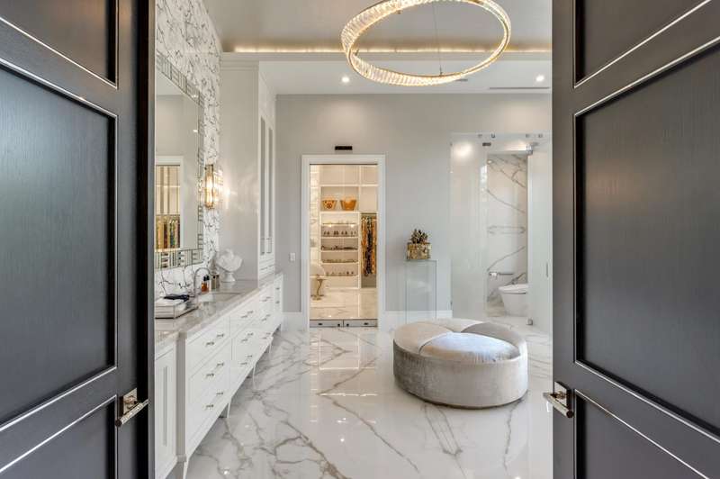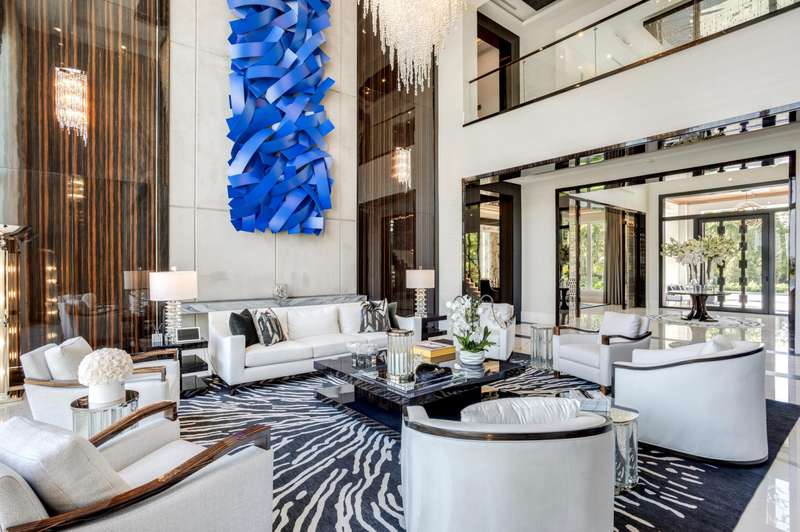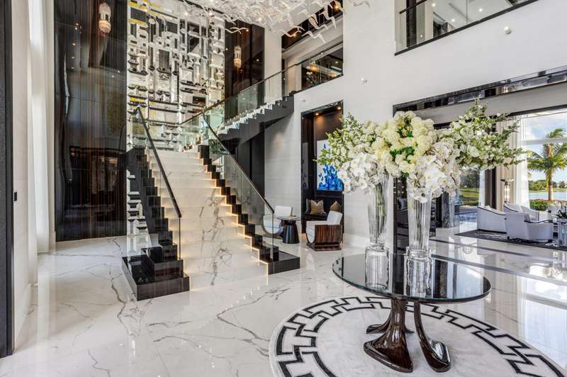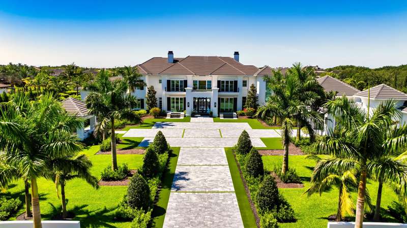 Stately Stone Creek Ranch Lakefront Estate sited on 2.5 +/- acres on the ''Pinnacle of Lots'' in this exclusive guard gated enclave by esteemed team of AK Build & Design, Brenner Architectural Group and Award- Winning Michael Gray Interiors. A streamlined Neo-classical architectural design is set back with an expansive auto plaza and private 6 bay garage. A monumental foyer entrance sets the stage with a grand staircase and direct grand salon window walls views to the shimmering pool and lakefront. A bespoke double island kitchen opens to the family and junior dining rooms all providing endless south views. An adjacent Club Room boasts a concert-sized TV, professional service bar with fine wine storage, 2 lane bowling alley and night club seating.