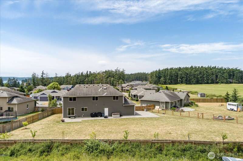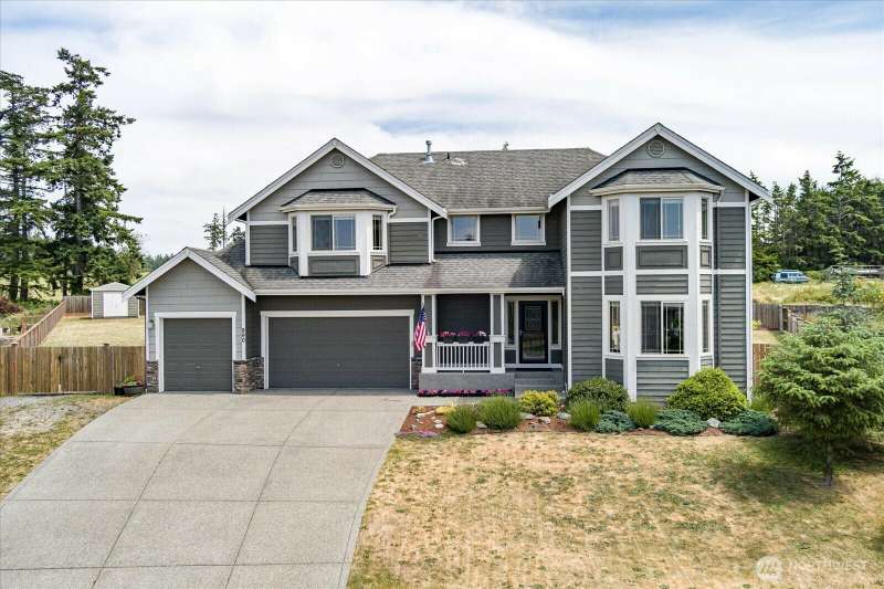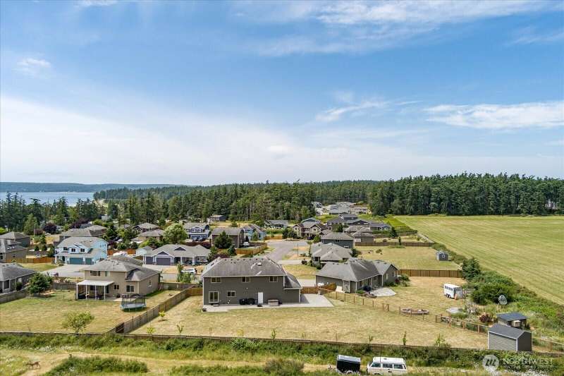 This great house tucked in the back of coveted Cove View Circle offers the perfect blend of quiet living and easy access to everything Whidbey has to offer. Inside, you’ll find generous spaces—including four true bedrooms, a large, open kitchen with granite counters, and wide plank flooring that brings warmth and character to the main living areas. The upstairs bonus room is ideal for movie nights, game days, or just spreading out. Step outside to a big sunny backyard made for summer dinners and relaxed weekends. With pastoral views it is a haven for pets, play, & gardening—complete with fruit trees, patio, and an outbuilding for extra storage or projects. A rare three-car garage gives you plenty of space for vehicles, gear, or a workshop.