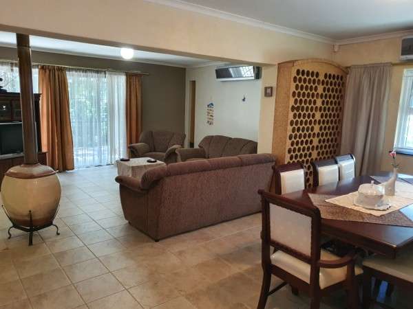 I present to you this 4 bedroom double storey family home situated in the heart of Gordons Bay Village. It is in need of some TLC .On the ground floor you have a large kitchen with ample cupboard space with a scullery off the kitchen. The kitchen leads into a diningroom and large lounge for family gatherings. There is also a built-in braai with a built-in bar for entertaining which leads out onto a covered patio. The lounge also has a stand-alone porcelain fireplace to keep you warm and cosy in the winter nights. On the upper floor you have 4 bedrooms with the main en suite with all rooms having ample cupboard space. There is also a guest toilet and a main bathroom. The house has burglar proofing throughout. There is a double garage with an automated flip-up door. You have a mature garden with trees, lawn and plants. The property is completely walled in with an electric main steel gate.. It is a short distance from the beach and close to all amenities. Don’t let this gem slip through your fingers and contact us today for a private viewing.