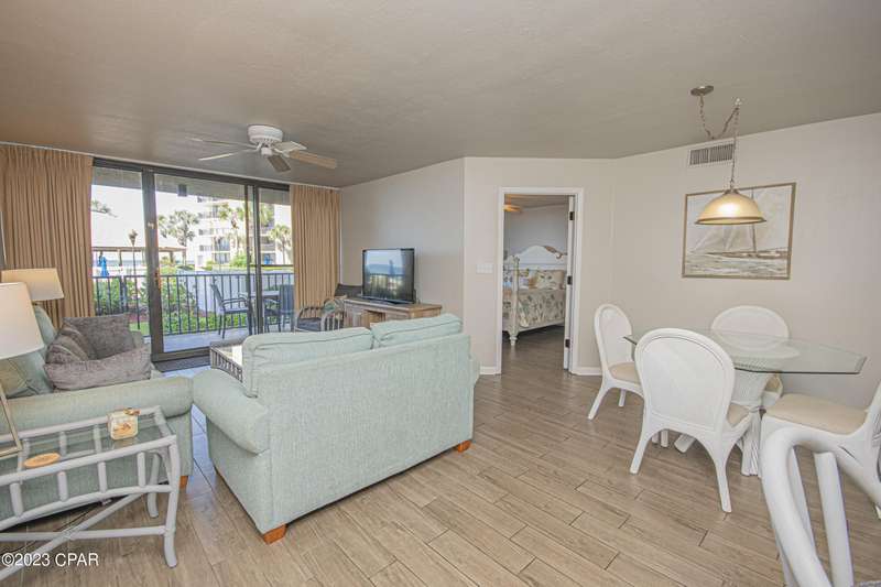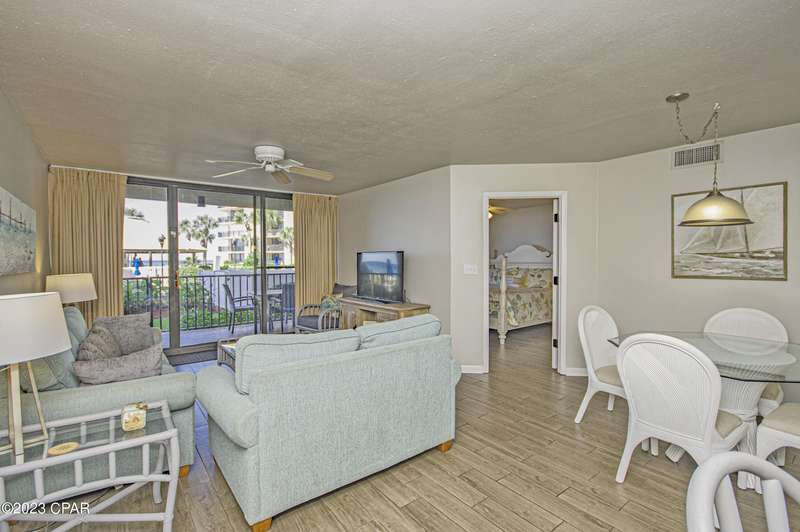 Brand New Air Conditioner July 2024. Welcome to SUMMERHOUSE CONDOS. Summerhouse has one of the best reputations up and down the beach, known as a family resort for many years. As a result we have guests that have been coming to Summerhouse for over 30-years. This very desirable 2-Bedroom, 2-Bath unit is located on the 1st. floor of the B-Building. Step right off your patio to the pool decks and beach access. The ground floor location of this unit would make this an excellent rental investment., Attractive plank flooring has been installed throughout the unit. The guest bath has had a total update including new vanity, hardware, lighting,mirrors, and shower. Summerhouse offers a full list of amenities for your enjoyment, including 2 pools, (one heated in the winter), a kiddie pool for the little ones, hot tub, tennis court, game-room, owners lounge, and an onsite Homeowners and Rental Office. Don't miss the large gulf front gazebo, a perfect spot to take a break from the sun, savor a snack, read a book, or simply people-watch. St. Andrews State Park is located just a short distance away and is the second most popular State Park in the state. Area grocer stores and popular restaurants are all nearby. The fishing, diving, and sight-seeing fleets are all located at Grand Lagoon just down the road from Summerhouse This is beach living at its finest.There is both an onsite rental and HOA offfice for your convenience.Relax on your balcony and watch as schools of fish, dolphins and rays swim by The pelicans and gulls float by close enough to touch Owners pets are welcome. Ground floor units seldom become available.Make an appointment to see this condo today--make this Summerhouse unit, ''YOUR SUMMERHOUSE''BRAND NEW AIR CONDITIONER JULY 2024OWNER GROSSED $46k IN 2024 with lots of owner usage.