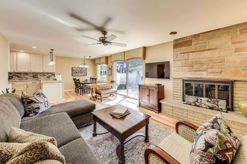Welcome to this beautifully updated 3-bedroom, 2-bath ranch that perfectly blends style, comfort, and thoughtful design, lovingly maintained by its longtime owner. A charming front porch sets the tone as you step inside to a spacious Living and Dining Room. The first-floor Family Room offers abundant natural light, a cozy woodburning fireplace, and sliding glass doors to the patio and professionally landscaped yard-ideal for both relaxing and entertaining. The Family Room flows seamlessly into the beautifully designed Kitchen featuring sleek, modern finishes including dark stainless steel appliances that offer both style and durability. The off-white cabinetry provides a bright, elegant contrast, enhanced by striking granite countertops and a contemporary glass tile backsplash. Recessed lighting and under-cabinet illumination create a warm and functional workspace, ideal for both everyday living and entertaining. A spacious pantry closet includes a dedicated electrical outlet-perfect for housing a microwave or additional small appliances, keeping your countertops clutter-free. Retreat to three generous bedrooms, including a newly remodeled primary suite with upgraded cabinetry and designer touches. Everyday convenience shines with a first-floor Laundry/Mudroom with its own closet off the two car garage. Additional highlights include custom high-end window treatments, engineered wood in the Kitchen and Family Room, hardwood flooring in bedrooms (including one with carpet), and a large basement ready for your finishing ideas with plenty of storage. Truly, this is the ranch you've been waiting for!