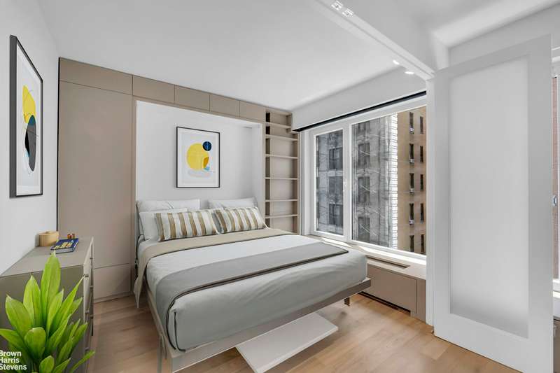 Welcome to a brand-new, gut-renovated 2-bedroom, 2-bathroom home with a flexible layout that includes a custom-built home office or convertible guest bedroom featuring a built-in Murphy bed. This sponsor unit requires no board approval and offers seamless luxury living, just a few steps from Central Park.
