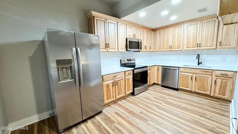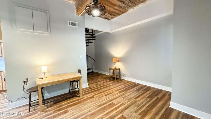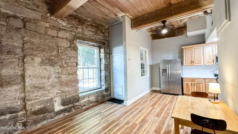 Stunning hidden gem on the Neuse River! This recently renovated condo boasts an open floor plan, perfect for entertaining.The living area features an exposed stone wall and wood beams, adding a touch of character. The newly updated kitchen features stainless steel appliances, tile backsplash, and quartz countertops - a chef's dream!A unique spiral staircase leads to the second floor, where you will find 2 bedrooms and 2 bathrooms.Outdoor living doesn't disappoint either! Enjoy your morning coffee in your private fenced-in courtyard, a peaceful retreat right outside your door.Additional highlights include:Freshly painted walls and new light fixtures throughout.A vibrant community with access to a community garden, walking trails, and a charming gazebo.Walking distance to Falls Lake, offering endless opportunities for recreation!Convenience of two designated parking spots per unit.
