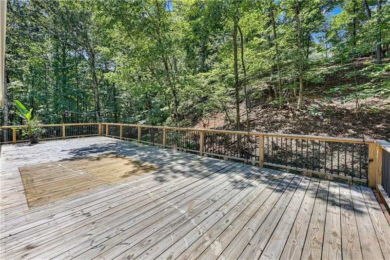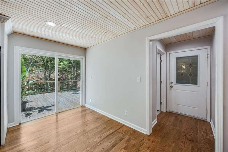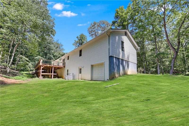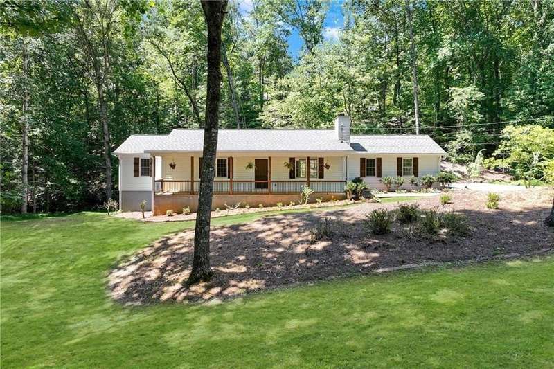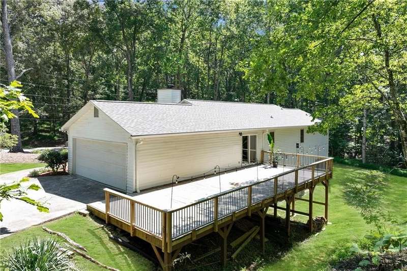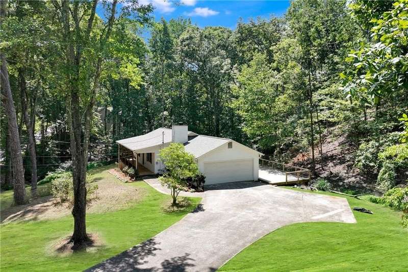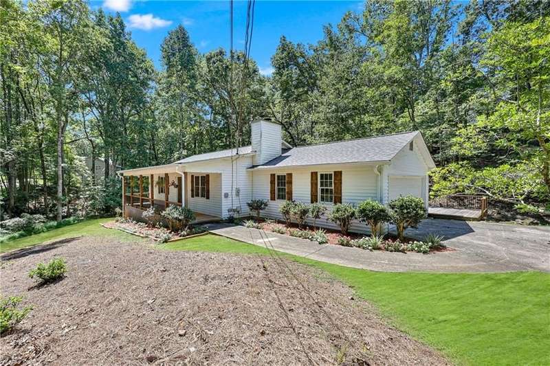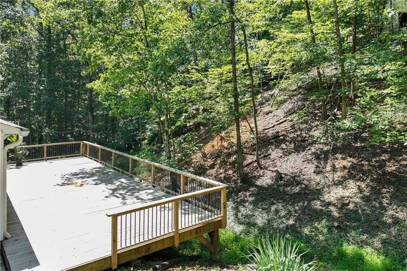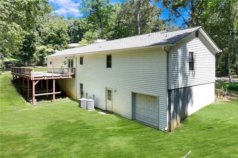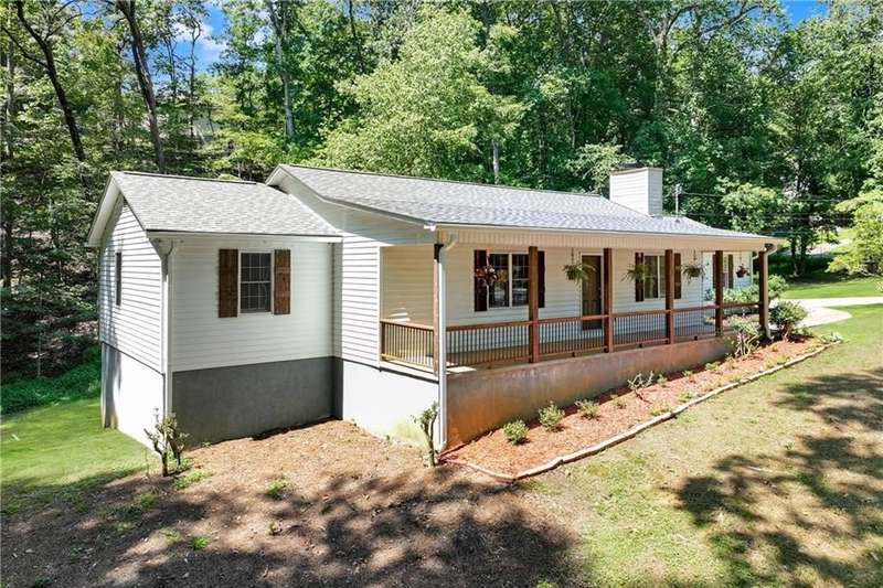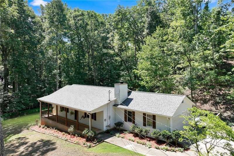 Beautifully renovated home on over an acre in established North Hall neighborhood with no HOA. Nestled on private double lots, this home features new hardwood floors flowing throughout the main level and an open floor plan for comfortable, everyday living. The island kitchen has KitchenAid stainless appliances, stone countertops, and a marble backsplash, adjecent to a breakfast area and dining area. The breakfast area opens to an oversized sundeck perfect for entertaining or just relaxing. The main level primary suite offers a tiled shower, double vanity, and walk-in closet, with a second bedroom with convenient laundry room nearby. The finished terrace level expands your living space with a large family/recreation room, two bedrooms, a full bath, and a versatile nook for an additional refrigerator or microwave—perfect for guests or a home office setup. There’s also unfinished basement space with a garage entry for hobbies, crafts, or yard equipment. Relax on the inviting front porch overlooking the low-maintenance yard and enjoy the peace and privacy this location offers, all while being close to schools, shopping, and Lake Lanier.