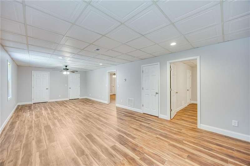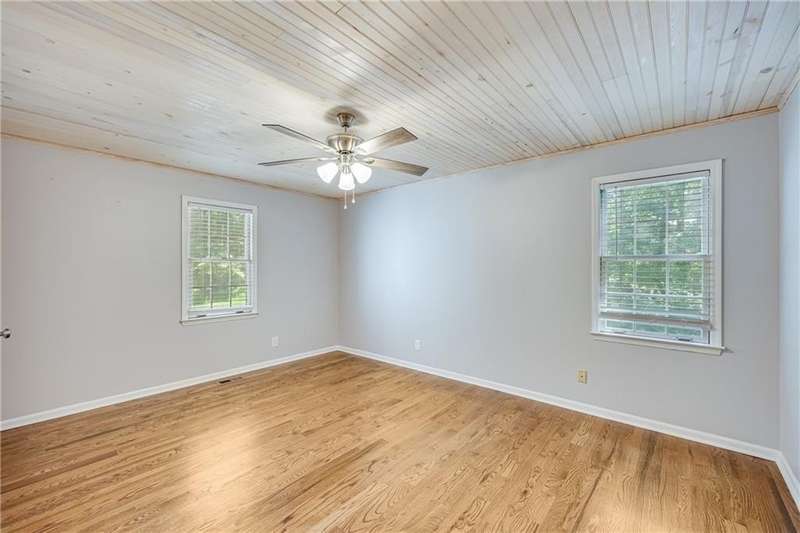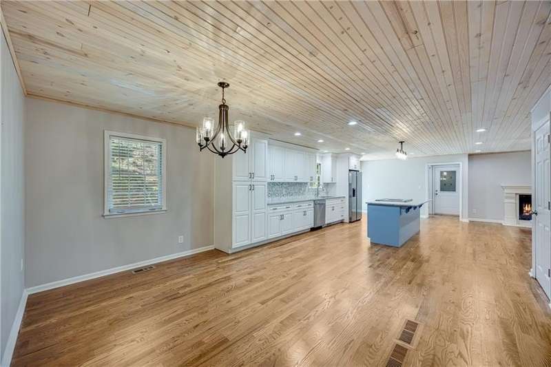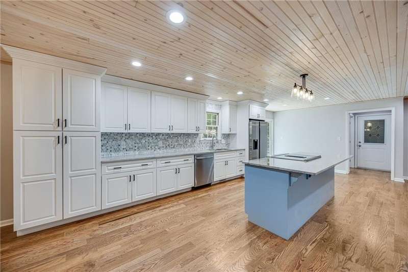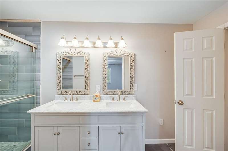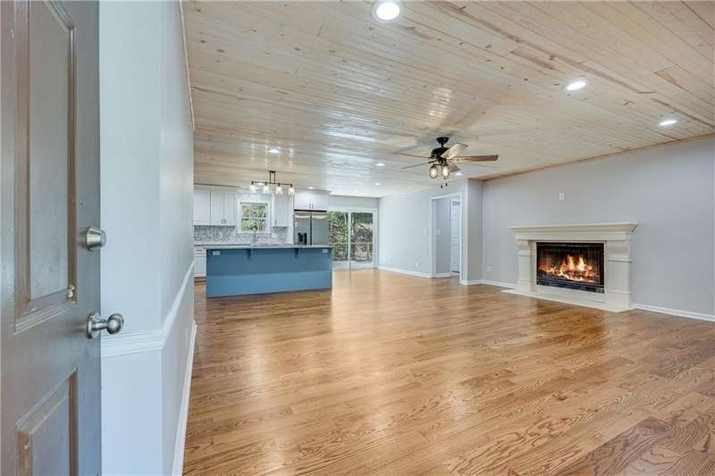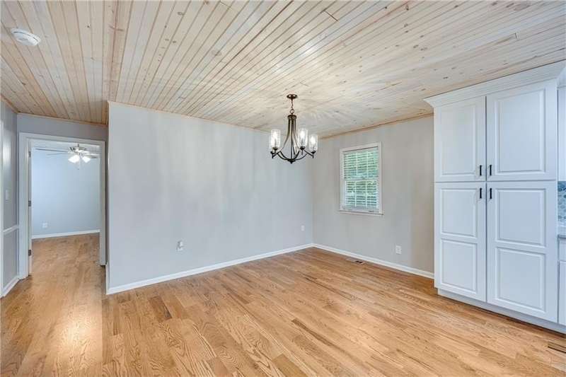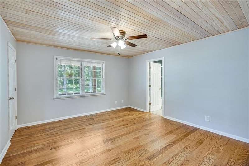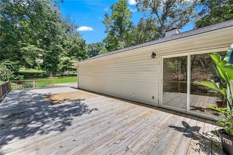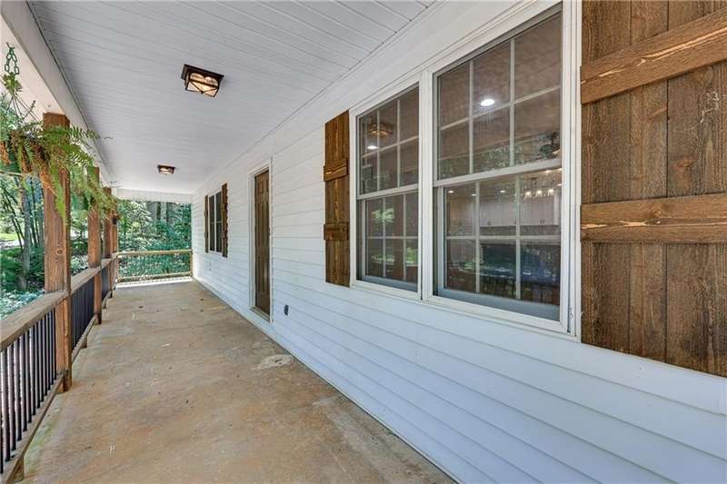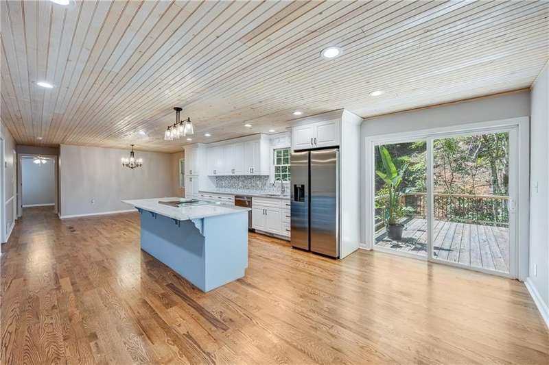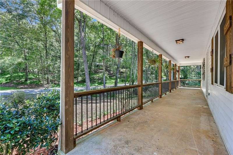 Beautifully renovated home on over an acre in established North Hall neighborhood with no HOA. Nestled on private double lots, this home features new hardwood floors flowing throughout the main level and an open floor plan for comfortable, everyday living. The island kitchen has KitchenAid stainless appliances, stone countertops, and a marble backsplash, adjecent to a breakfast area and dining area. The breakfast area opens to an oversized sundeck perfect for entertaining or just relaxing. The main level primary suite offers a tiled shower, double vanity, and walk-in closet, with a second bedroom with convenient laundry room nearby. The finished terrace level expands your living space with a large family/recreation room, two bedrooms, a full bath, and a versatile nook for an additional refrigerator or microwave—perfect for guests or a home office setup. There’s also unfinished basement space with a garage entry for hobbies, crafts, or yard equipment. Relax on the inviting front porch overlooking the low-maintenance yard and enjoy the peace and privacy this location offers, all while being close to schools, shopping, and Lake Lanier.