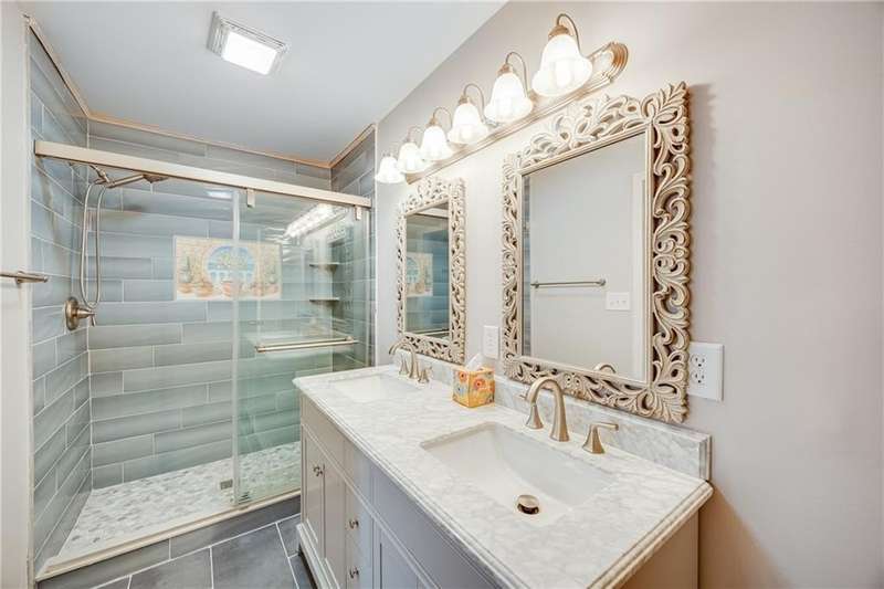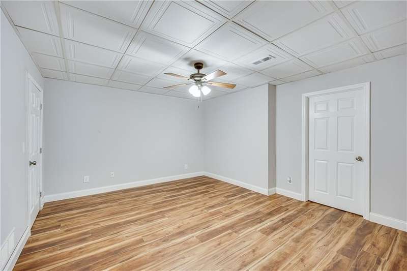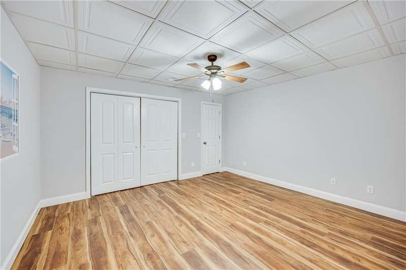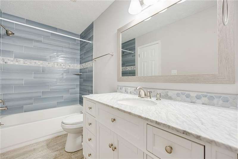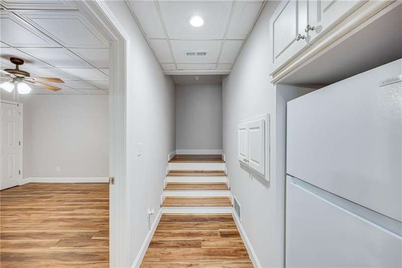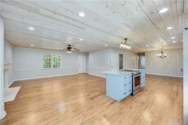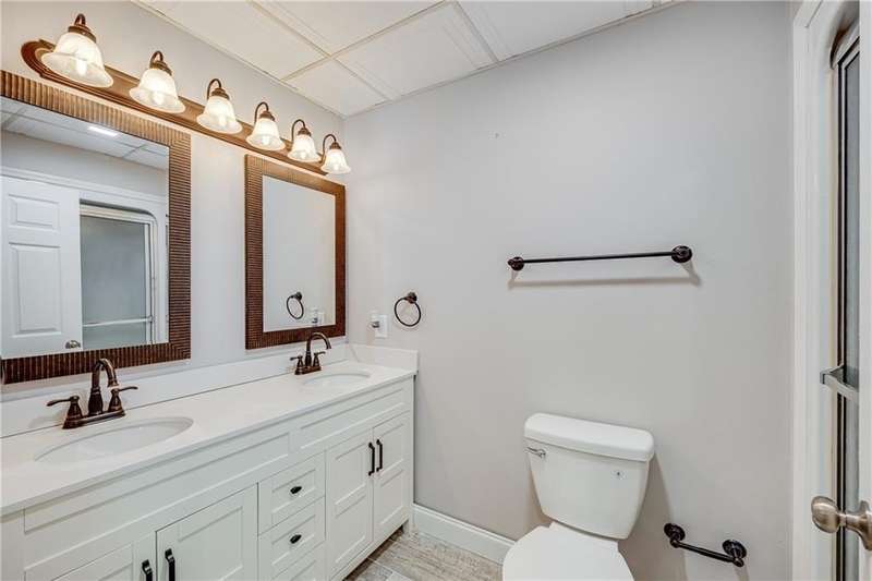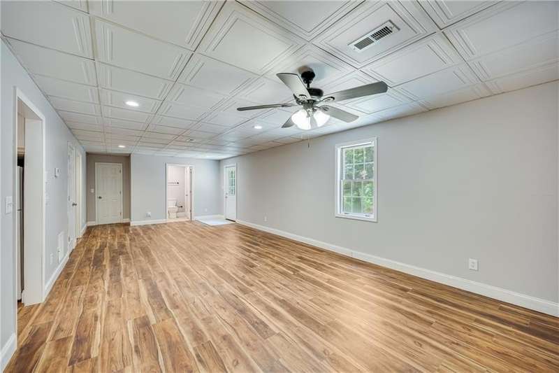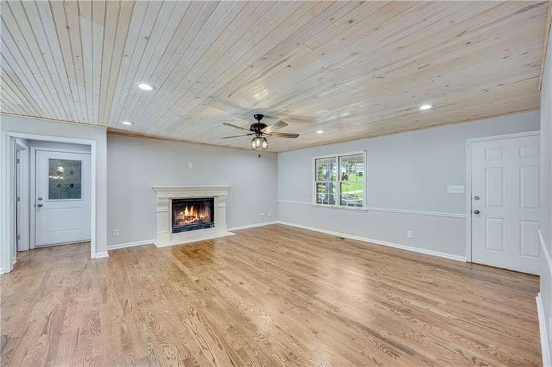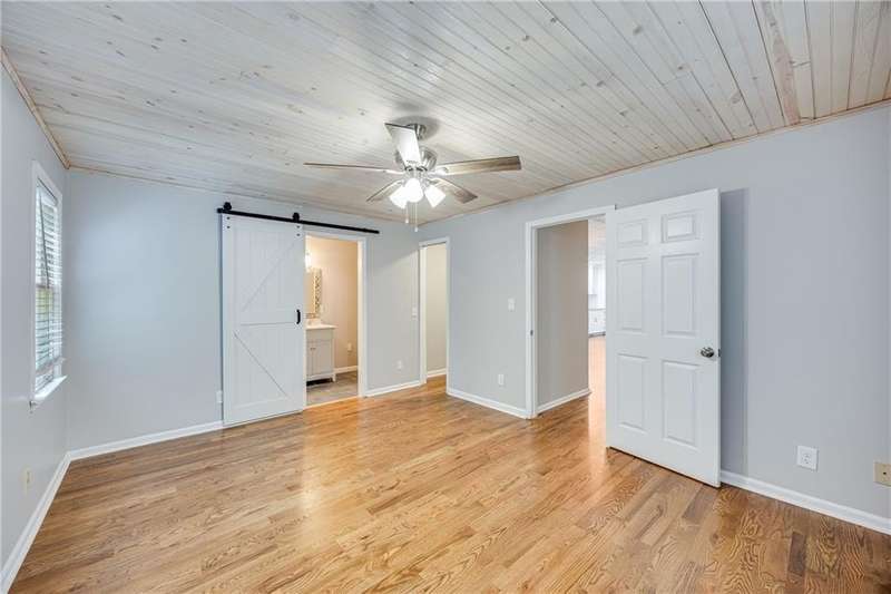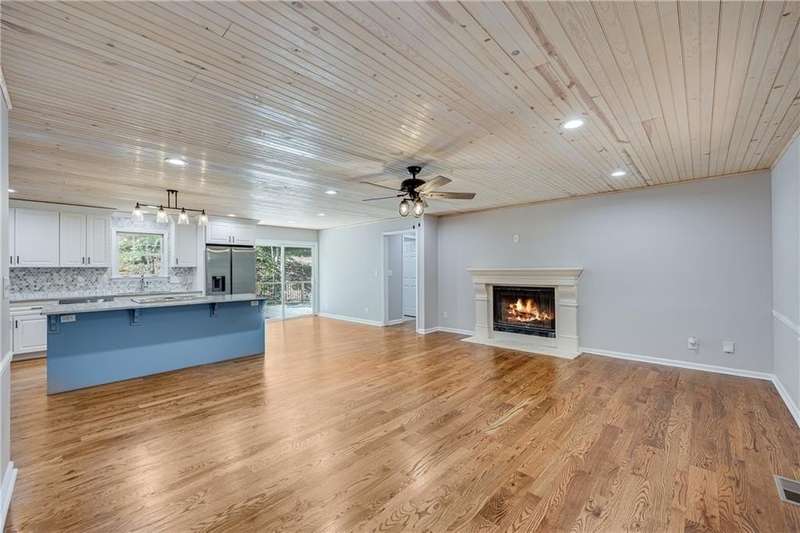 Beautifully renovated home on over an acre in established North Hall neighborhood with no HOA. Nestled on private double lots, this home features new hardwood floors flowing throughout the main level and an open floor plan for comfortable, everyday living. The island kitchen has KitchenAid stainless appliances, stone countertops, and a marble backsplash, adjecent to a breakfast area and dining area. The breakfast area opens to an oversized sundeck perfect for entertaining or just relaxing. The main level primary suite offers a tiled shower, double vanity, and walk-in closet, with a second bedroom with convenient laundry room nearby. The finished terrace level expands your living space with a large family/recreation room, two bedrooms, a full bath, and a versatile nook for an additional refrigerator or microwave—perfect for guests or a home office setup. There’s also unfinished basement space with a garage entry for hobbies, crafts, or yard equipment. Relax on the inviting front porch overlooking the low-maintenance yard and enjoy the peace and privacy this location offers, all while being close to schools, shopping, and Lake Lanier.