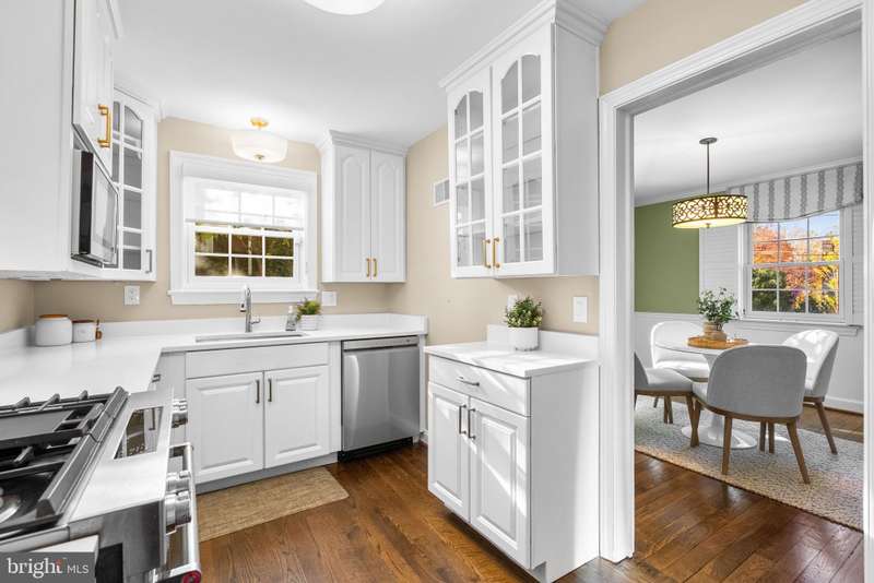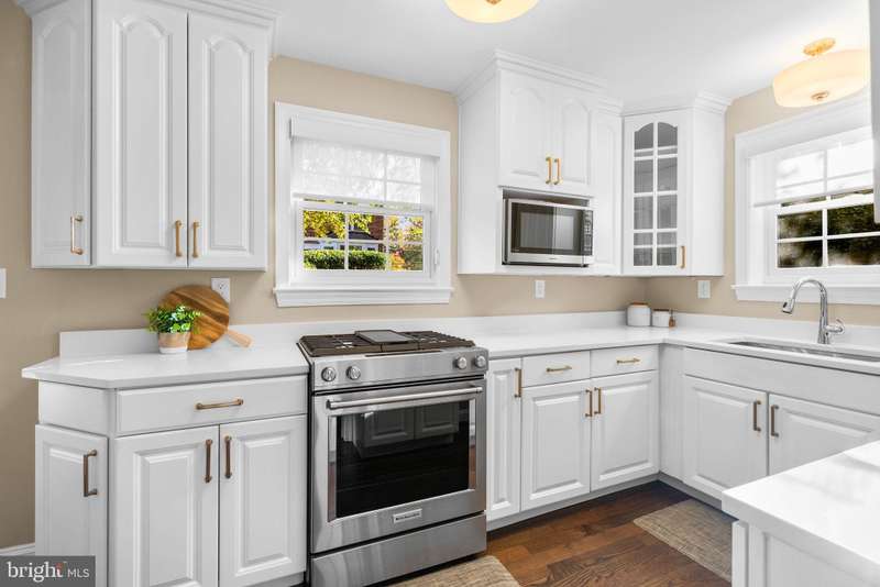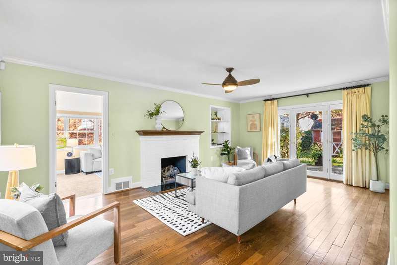 Charming Cape Cod in the Heart of Woodmoor! Just 3 blocks to the Woodmoor Shopping Center and 2 blocks to the Northwest Branch trails, this impeccably maintained home offers the perfect blend of classic character, modern updates, and an unbeatable location. Gorgeous curb appeal welcomes you home, and fantastic natural light fills every room. Hardwood floors greet you upon entry and continue through the traditional main level layout. The living room features crown molding, a gas fireplace, and French doors that open to the slate patio and level backyard-perfect for outdoor dining and relaxation. The dining room is generously sized for Woodmoor and offers both crown molding and chair rail detail. The updated kitchen includes white quartz counters, white cabinetry, and stainless steel appliances. Adjacent to the living room is a bright and inviting family room with walls of windows and additional access to the backyard. The upper level includes a spacious primary bedroom and a second bedroom-both with hardwood floors-and a beautifully renovated full bath. The finished lower level offers additional living space with a second family room and office area, plus a true 3rd bedroom with legal egress and an en-suite full bathroom-ideal for guests or flexible living arrangements. Additional features include an attached 1-car garage and driveway parking for two more cars. A rare opportunity in one of Silver Spring's most beloved neighborhoods-steps to shops, parks, trails, schools, and commuter routes!