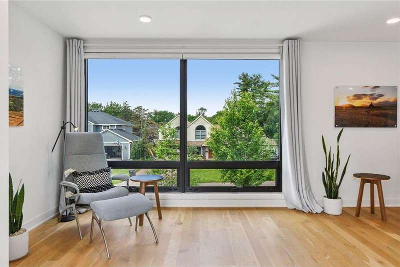 A Sustainable 9 (S9) luxury custom build inspired by Scandinavian architecture and European simplicity, this stunning Parade of Homes Dream Home is located in one of Edina’s most desirable neighborhoods. Designed with intention and executed with precision, this architect-crafted home blends timeless design with forward-thinking sustainability. The sellers envisioned a home made of extraordinary, eco-conscious materials—and the result is nothing short of spectacular. Clean lines and a harmonious connection to the natural landscape immediately set the tone. Inside, sunlight pours through strategically placed windows, emphasizing the minimalist elegance of the open-concept floor plan. Three bedrooms, three-and-a-half bathrooms, and thoughtful living spaces deliver modern luxury at every turn. Oak floors bring warmth to sleek whites and grays, while the kitchen impresses with Signature Kitchen Suite appliances, Crystal Cabinets, and a spacious island—ideal for entertaining alongside the built-in Sonos sound system. Enjoy summer meals on the main-level deck or sip coffee on the upper-level deck off the owner’s suite. In colder months, cozy up by the Wittus Shaker wood stove or relax in the cedar Finlandia sauna. The lower level features a polished concrete floor with in-floor heat, a family room with wet bar and wine fridge, a guest bedroom, and a full bath. Upstairs, the flexible loft space is ideal for work or guests. The primary suite is a peaceful retreat with blackout shades, a walk-in closet, and a spa-like bath with heated floors. Additional highlights include a 2+ car heated garage, second-floor laundry, generous storage, and a custom mudroom. Smart home features include Wi-Fi boosters throughout. Just five blocks from Pizzeria Lola and Gia, this is conscious luxury living at its finest. 4th Bedroom can be completed prior to closing with acceptable offer.