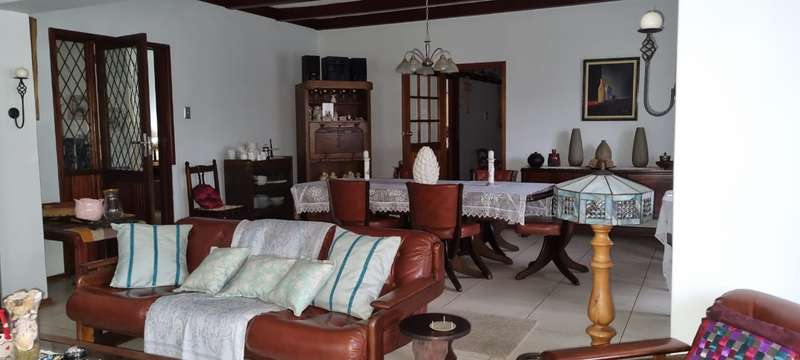 Discover a unique investment opportunity with this charming property, perfect for a thriving bed & breakfast venture. The main house boasts 3 spacious bedrooms, including a luxurious master suite with a dressing room as well as an en-suite, and 1 modern bathroom. Enjoy open-concept living with a lounge, dining area, TV room, and study, all seamlessly connected. The fully fitted kitchen and scullery cater to your culinary needs. Adding to its allure, the property features 7 exterior rooms currently operating as a successful B&B. One of these stands out with its expansive layout, featuring 2 bedrooms, a bathroom, an open-plan lounge, a dining room, and its own kitchen. Indulge in the built-in Braai area, unwind in the sauna accessible through the laundry room, and take a dip in the inviting swimming pool. Additional highlights include a JoJo tank, storage shed, and ample parking space with 2 double garages and 4 carports. Embrace the potential of this investment gem today.