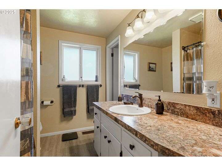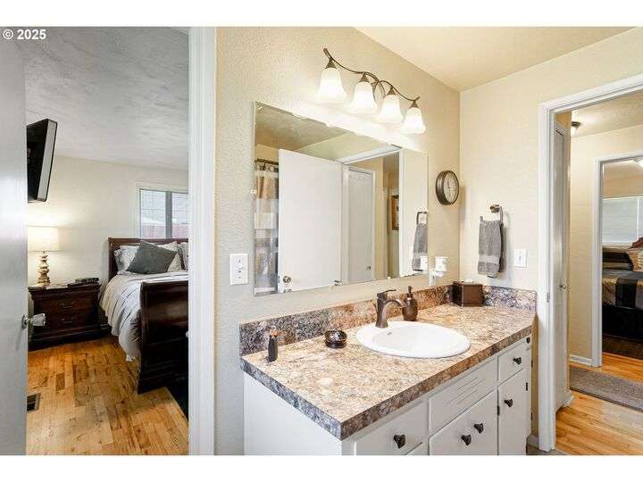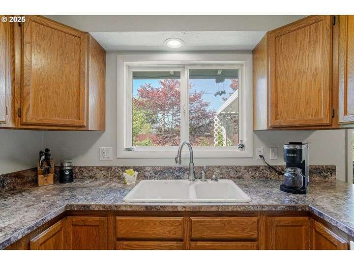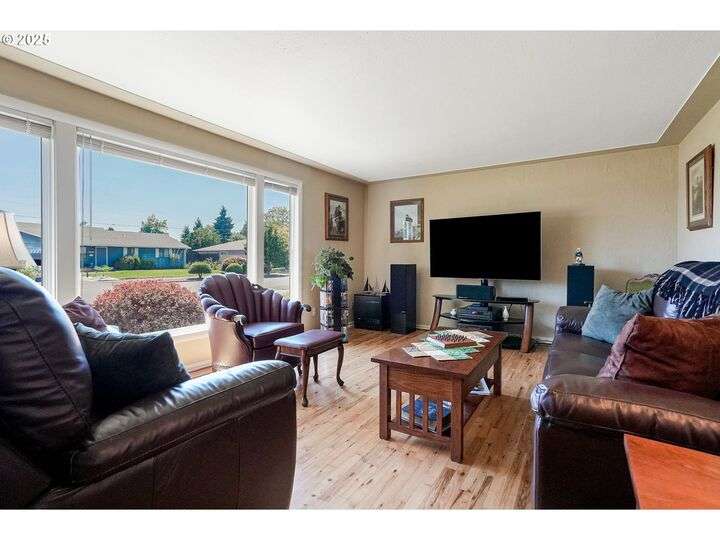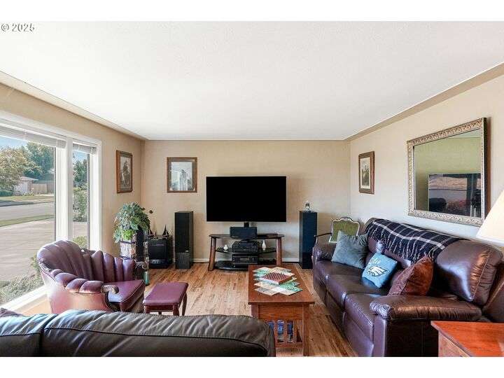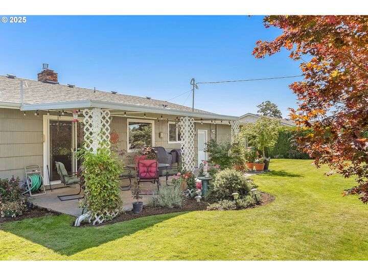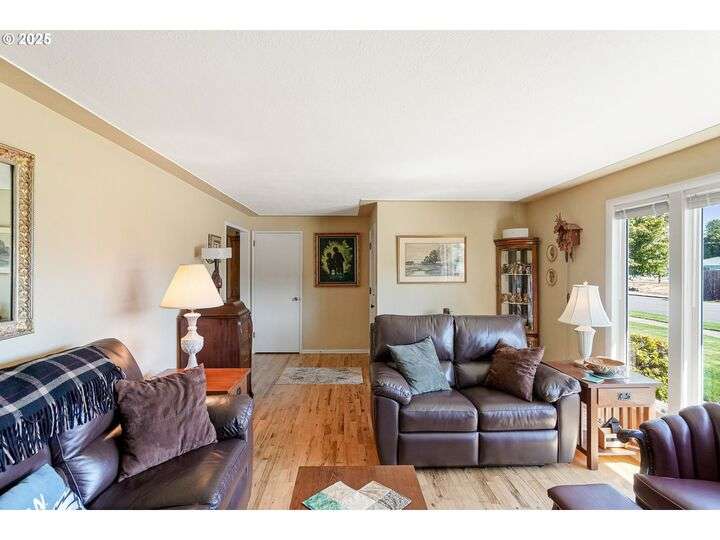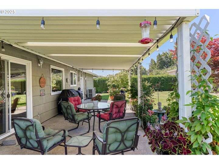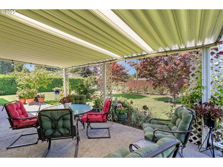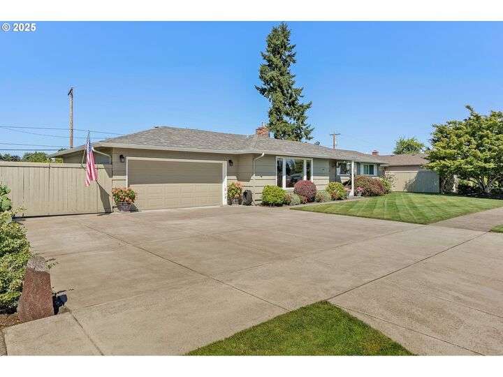 Exceptional condition inside and out! Large front living room with oak hardwood floors. Great room with gas stove in fireplace that opens up to kitchen and out to covered patio. Updates include Roof, Concrete Driveway, HVAC w/ HP, Water Heater, Cook Top & Dishwasher, Milgard windows, and Great Room Carpet. Gardener's dream yard with beautiful landscaping, trees, garden, & covered patio. Underground sprinkler to help keep it all green. Large flat driveway and gated RV pad.