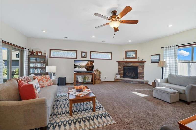 Beautifully designed 2016 custom-built home offering over 2,000 finished square feet of thoughtfully planned living space - all on one level! The home offers ample space to comfortably live and host friends & family with ease. Spread out in the extra large living room with a cozy gas fireplace. The kitchen shines with custom cherry cabinetry, granite countertops, and a spacious dining room. The home includes three bedrooms, including a generous primary with a private bath and walk-in closet, and a second guest bathroom. Large windows fill the home with natural light, handsome solid 3-panel doors and 9' ceilings throughout, plus multiple storage closets, and a full laundry room. Enjoy the shade under the covered front porch or back NE facing patio surrounded by beautiful landscaping, a lush lawn, and a dedicated garden space. A concrete driveway and attached garage with an 18' door complete the picture. Enjoy the benefits of a fully finished (inside & outside) gently lived-in home and save tens of thousands compared to new construction. Built by a local, quality-focused, custom home builder.