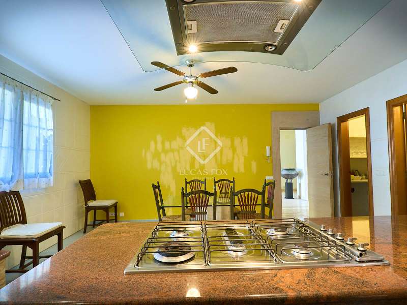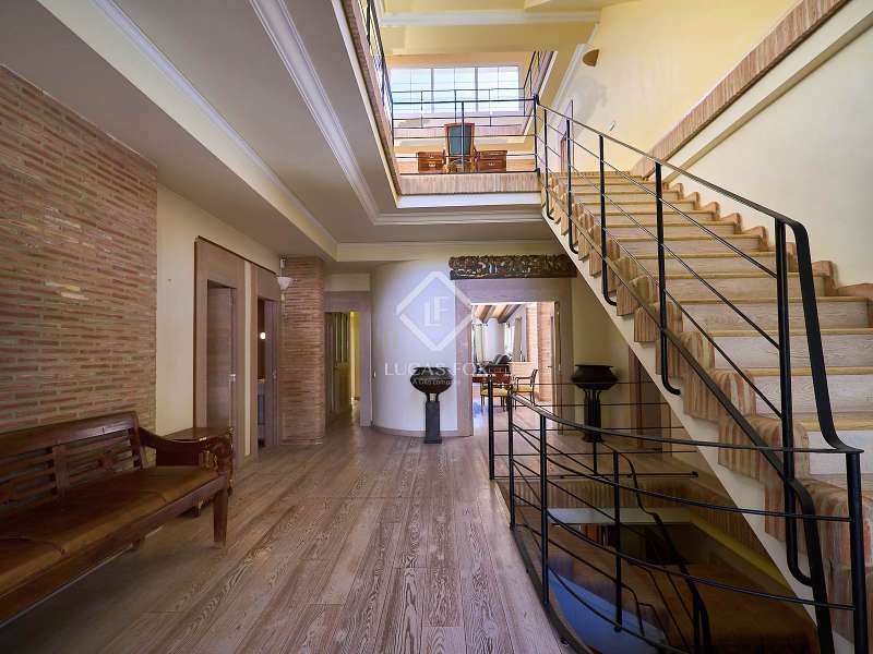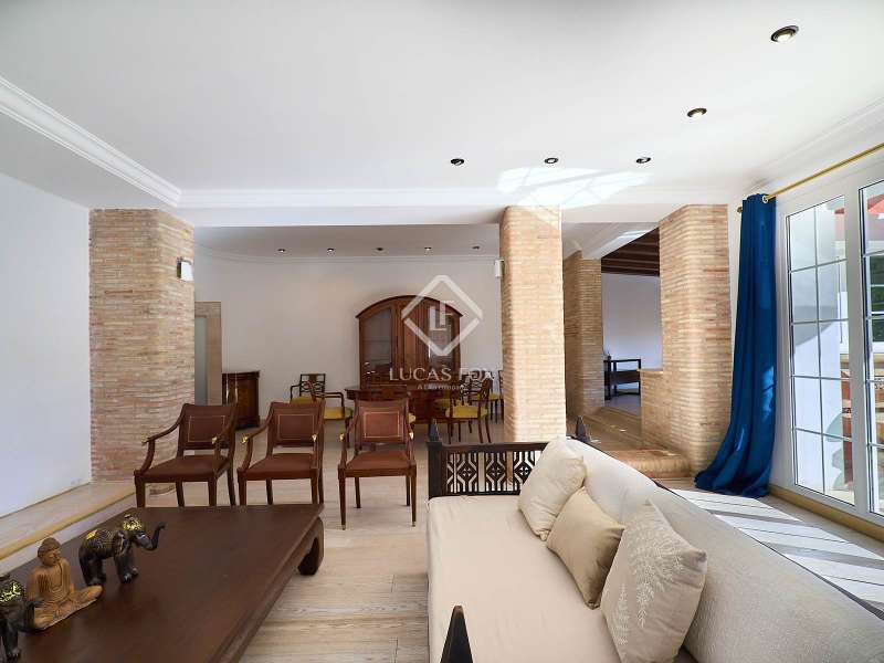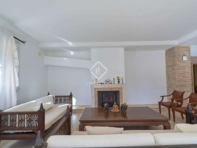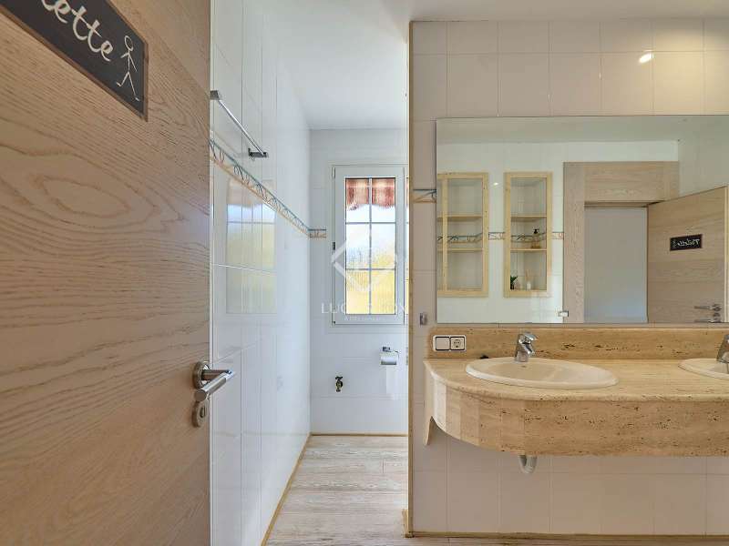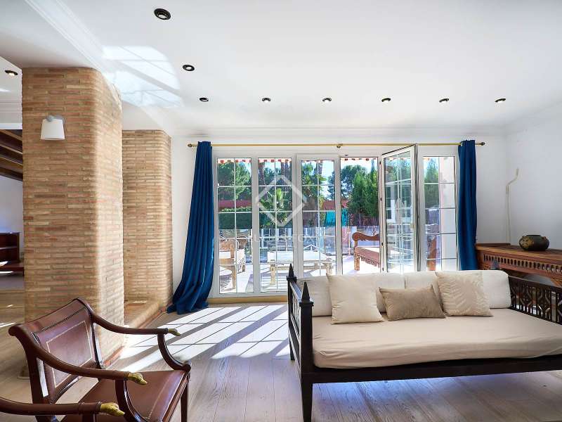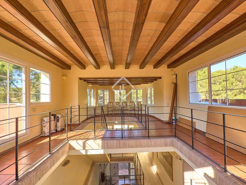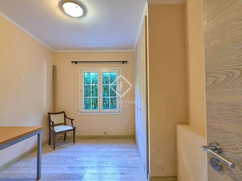 This majestic house offers a large entrance hall which is flooded with natural light thanks to the glazed viewpoint at the top of the house. After the hall is the spacious living area with 3 rooms and a fireplace, giving access to the terrace and pool. Both the terrace and the pool are south east facing, so enjoy sun most of the day. The kitchen also has access to the terrace through the laundry area and is located behind the living room. This is a very large kitchen with 2 pantries and space for a dining table. On the main floor we also find a guest area tucked away with 2 bedrooms, a bathroom and a living room or study. The rest of the sleeping area is located on the top floor that offers 4 bedrooms. The master bedroom is located above the pool and has a dressing room, living room, double bathroom with shower and a closet area. 2 of the bedrooms are connected through a double bathroom with a shower and both have a study area and fitted wardrobes. The third bedroom is a separate suite with bathroom and fitted wardrobes. The third floor is a basement that is at street level in some areas. It consists of a cellar, a very large room that can be a gym or a large lounge, a bathroom with a shower, a toilet and an entertainment room and / or games room.