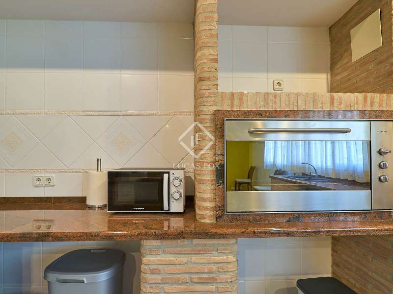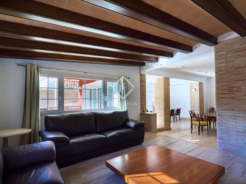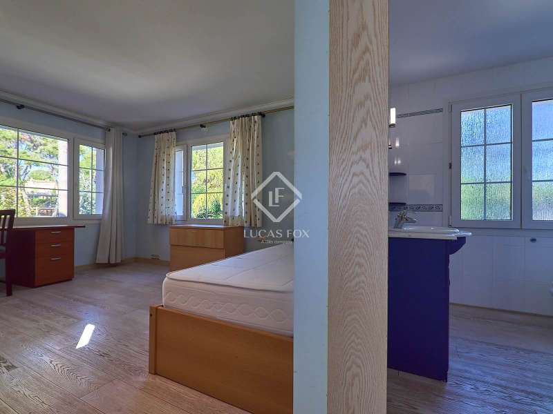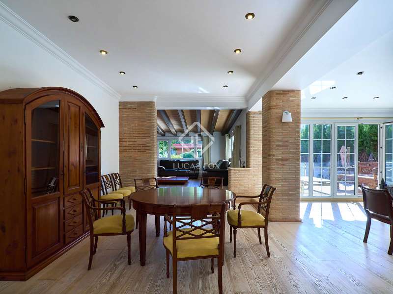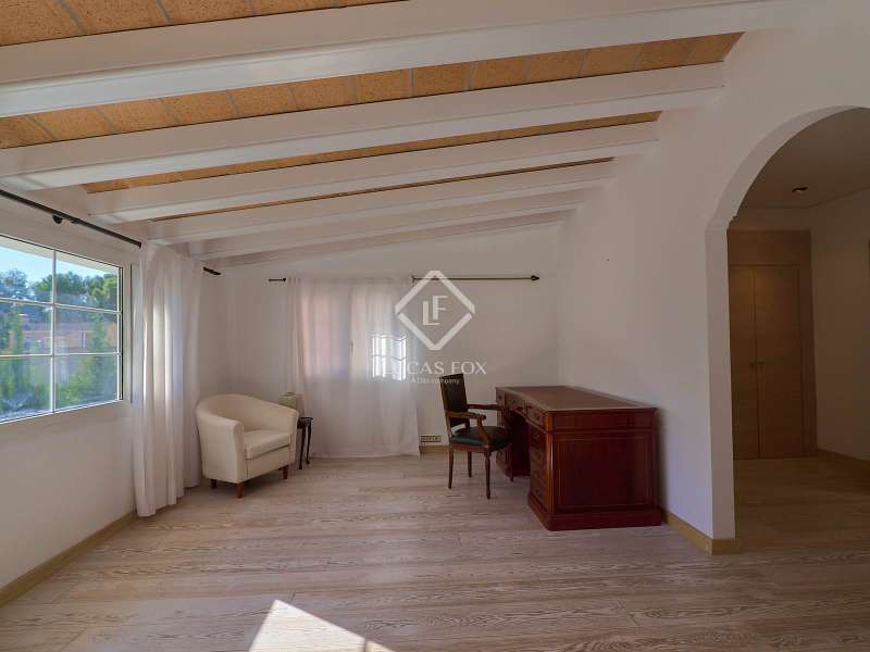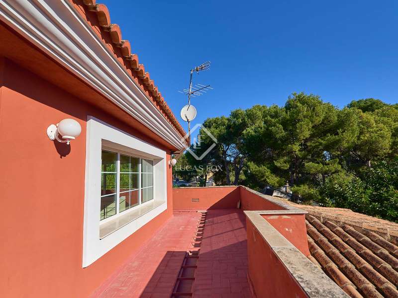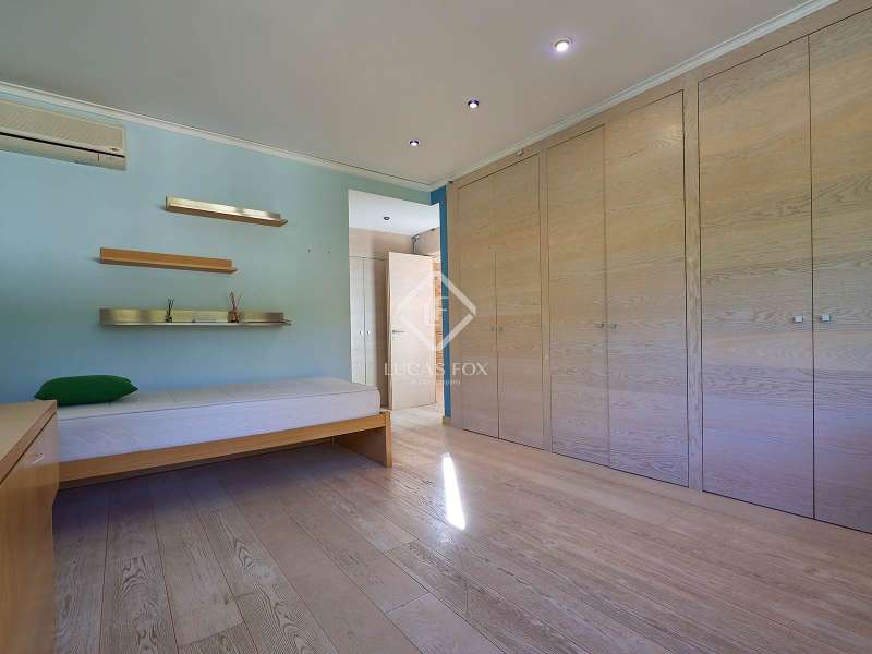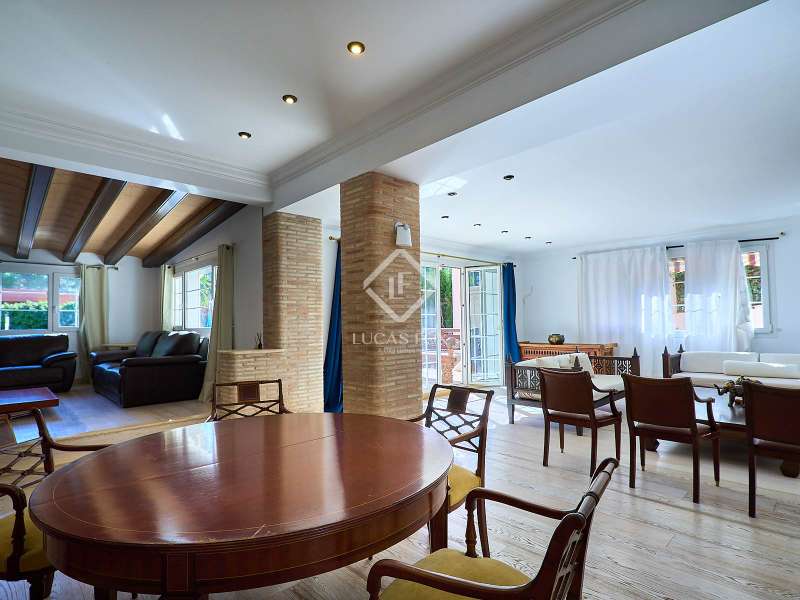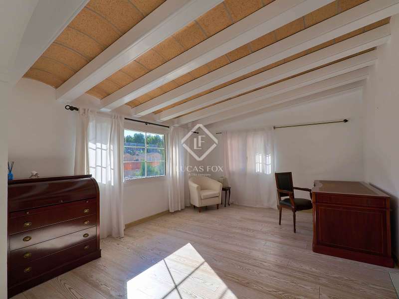 This majestic house offers a large entrance hall which is flooded with natural light thanks to the glazed viewpoint at the top of the house. After the hall is the spacious living area with 3 rooms and a fireplace, giving access to the terrace and pool. Both the terrace and the pool are south east facing, so enjoy sun most of the day. The kitchen also has access to the terrace through the laundry area and is located behind the living room. This is a very large kitchen with 2 pantries and space for a dining table. On the main floor we also find a guest area tucked away with 2 bedrooms, a bathroom and a living room or study. The rest of the sleeping area is located on the top floor that offers 4 bedrooms. The master bedroom is located above the pool and has a dressing room, living room, double bathroom with shower and a closet area. 2 of the bedrooms are connected through a double bathroom with a shower and both have a study area and fitted wardrobes. The third bedroom is a separate suite with bathroom and fitted wardrobes. The third floor is a basement that is at street level in some areas. It consists of a cellar, a very large room that can be a gym or a large lounge, a bathroom with a shower, a toilet and an entertainment room and / or games room.