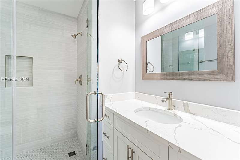 Welcome to Courtside Villas! This beautiful Villa has been completely remodeled in 2024 and also offers a modern, open floorplan; perfect for both relaxation and entertaining! The fully equipped kitchen features sleek quartz countertops, stainless appliances and new cabinetry offering both style and functionality. Both bathrooms are equally impressive, with luxurious walk-in showers and quartz countertops. The entire home is outfitted with new, stylish furniture as well as new furnace and air conditioning systems. Step outside to enjoy the large community pool or take advantage of the home s prime location, just a 5 minute walk to the beach.