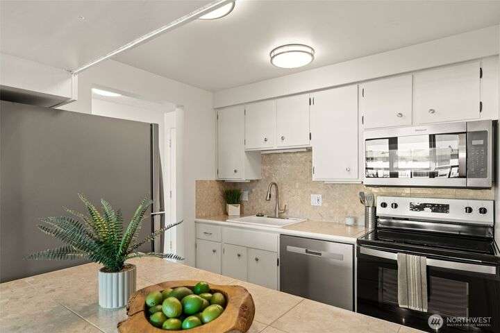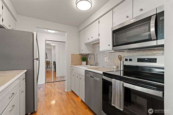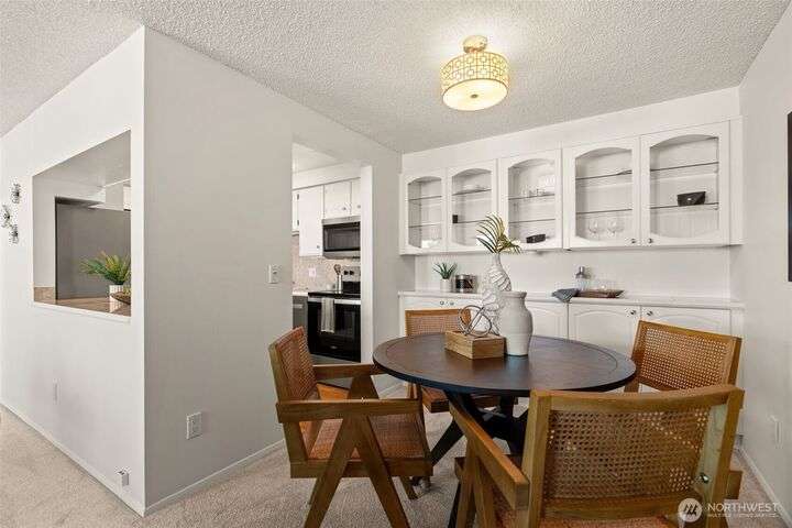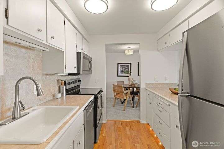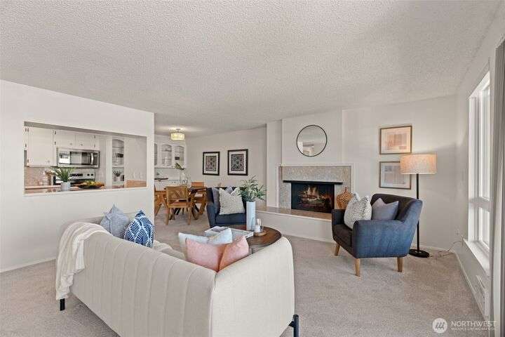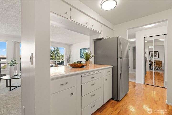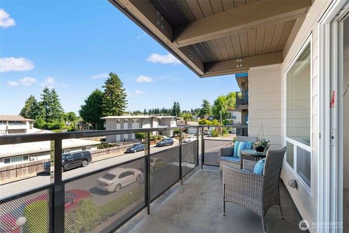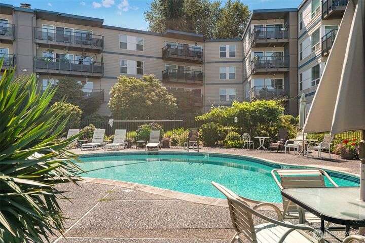 Partial Puget Sound views from this updated Highland Park condo in the heart of the Edmonds Bowl! Recent upgrades include refreshed bathrooms, new flooring, and modern appliances. Light-filled living and dining rooms open to a view deck—perfect for watching ferries, sunsets, and sparkling night waters. The primary suite offers generous closet space and an updated bath. Washer/Dryer in unit. Enjoy resort-style amenities with a heated pool, beautifully landscaped grounds, secured lobby, elevator, and extra storage. Just blocks to charming downtown Edmonds with shops, cafés, restaurants, beach, and waterfront. Move-in ready and waiting for you!