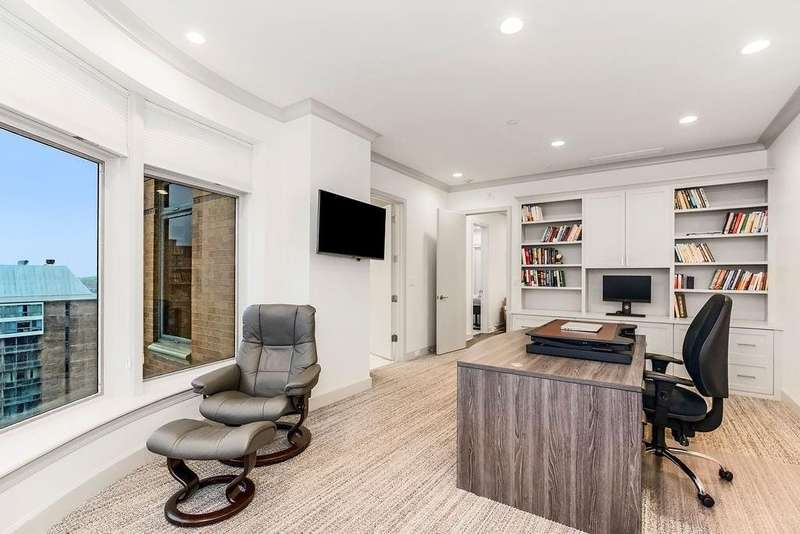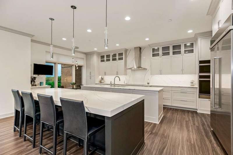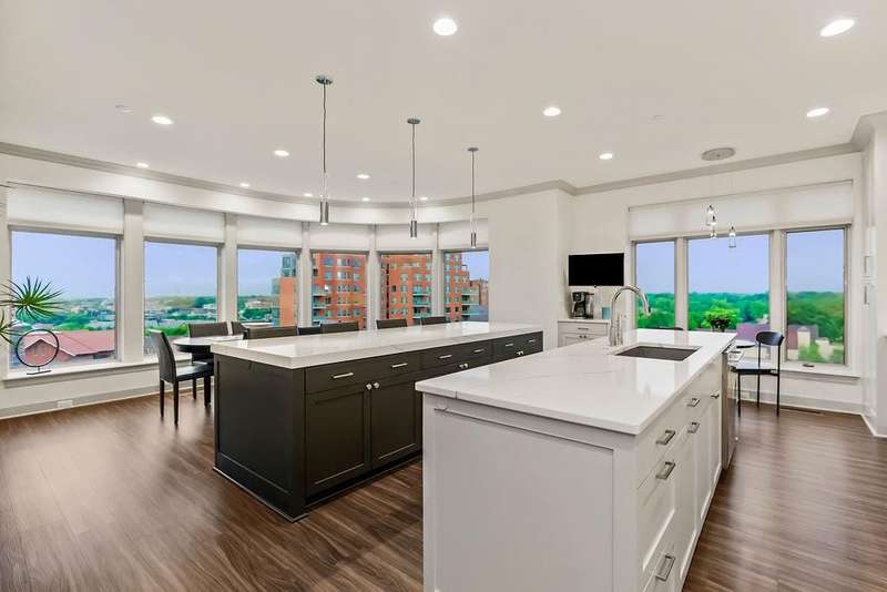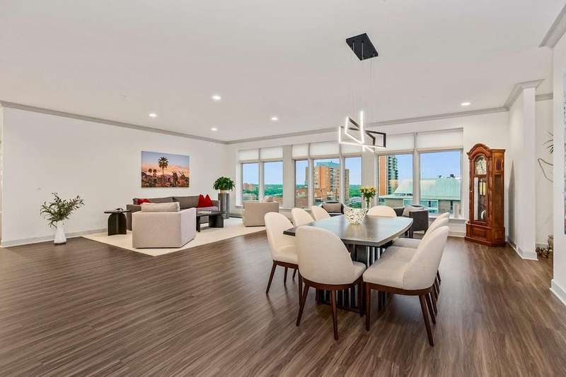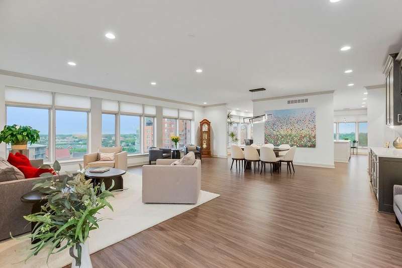 Experience luxury living at its finest in this completely reimagined 10th-floor condo at the historic Alameda Towers. Renovated from the studs up, this modern and sophisticated residence blends timeless elegance with every contemporary upgrade imaginable. From the marble entry and newly refinished vestibule, every detail has been thoughtfully curated.The open-concept living and dining area features new LVP flooring, abundant overhead lighting, and a wall of custom built-ins for seamless storage. Expansive windows offer breathtaking views of the Country Club Plaza and Alamedas redesigned gardens, framed by Hunter Douglas blinds. The gourmet double-island kitchen is outfitted with quartz countertops, a professional refrigerator, upgraded appliances, a built-in coffee bar, wine and beverage centers, soft-close cabinetry that reaches the ceiling, and endless storage.This two-bedroom, three-bathroom home includes plush carpeted bedrooms, with one featuring an adjoining bath and flex space that could serve as a home office or guest suite. The spacious primary suite offers stunning southern park views and an exceptionally designed layout with a five-piece spa bath including dual vanities, soaking tub, oversized walk-in shower with hand-held faucets, and direct access to the laundry roomcomplete with cabinetry, storage, and a private water closet.Additional highlights include double coat closets, hall storage, a walk-in primary closet with built-in dresser, bonus space ideal for a gym or second walk-in closet, all-new electrical and plumbing systems, and two reserved parking spots plus a climate-controlled storage unit.Located just steps from the iconic Country Club Plaza, this rare offering provides the ultimate in Kansas City luxury living with building upgrades including the garden, front entrance, and guest parking.