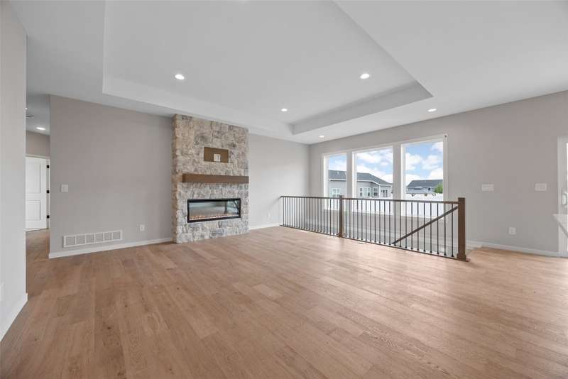 MOVE-IN-READY** This warren plan features 9' ceilings, 10' trey ceiling in the great room, custom stair railing, white painted trim, quartz countertops, soft close cabinetry, and a primary suite with large walk in closet and dual sinks. This property will also include a fully sodded yard and privacy tress in the backyard! The basement can be finished with an additional bedroom, rec room and bathroom for $38,220. Sellers would consider a trade on this home. 10-Year builder warranty included.
