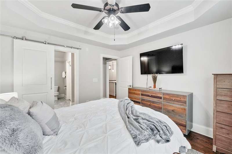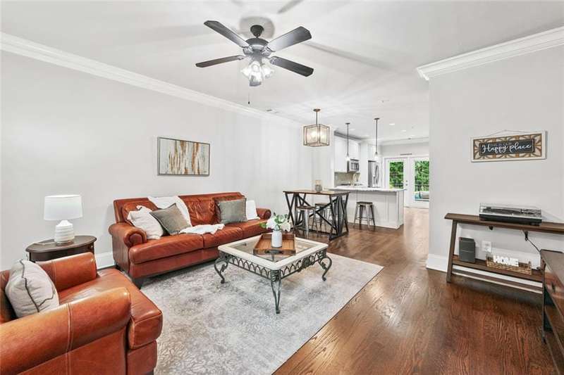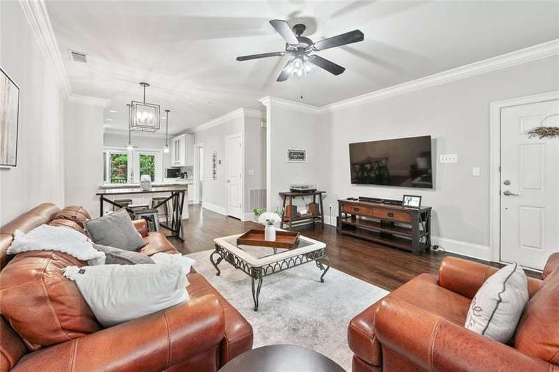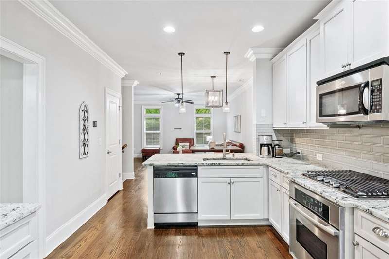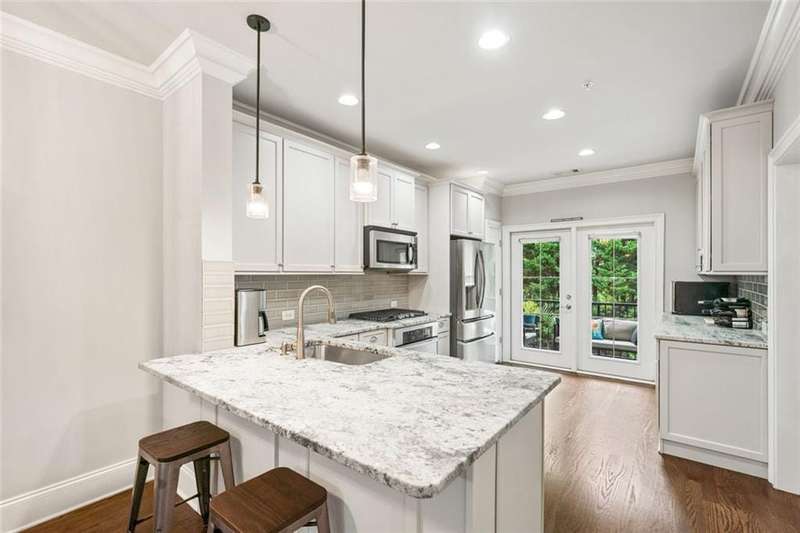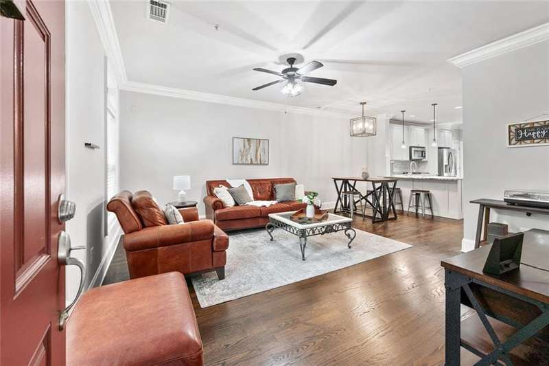 Perfectly positioned near GA-400 and I-285, this move-in ready home in Promenade at Northplace delivers the perfect blend of style, comfort, and convenience while offering unmatched access to City Springs, Perimeter Mall, MARTA, parks, dining, shopping, and entertainment. Every inch has been thoughtfully upgraded, from the quartz kitchen with premium cabinetry to the reconfigured primary bath with a sleek, modern design, and the fully renovated secondary bath. Luxury hardwood floors flow throughout, accented by crown molding, designer lighting, and on trend neutral paint. Comfort comes easy with a brand-new HVAC system. Enjoy morning coffee on your private balcony, park with ease in your rear-entry garage, and take advantage of a community pool and green space just outside your door. With HOA dues covering exterior maintenance including the roof, gas, pest control, trash, and landscaping, weekends are yours to explore, relax, and enjoy everything the Perimeter lifestyle has to offer.