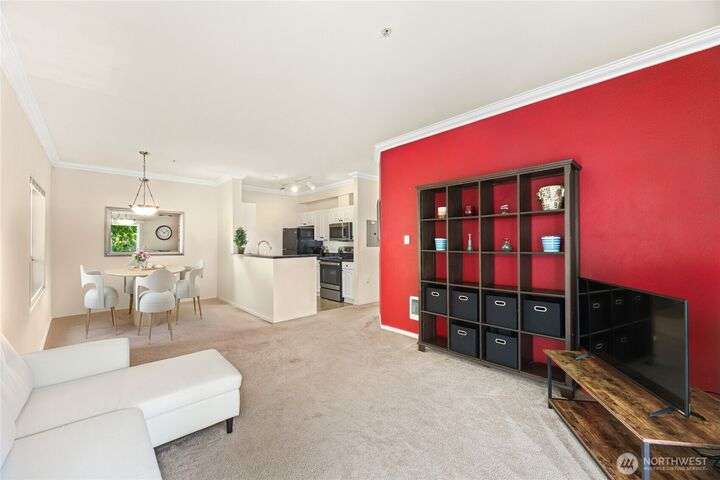 Welcome to your very own treehouse at Bokara by the Lake. A secure gated community offering resort-style amenities, including a clubhouse, pool, hot tub & guest parking. This upper floor unit is lovingly maintained. The condo features an open floor plan, with 9' ceilings. The galley kitchen has stainless appliances. Spacious 1 bedroom with a walk in closet. The outdoor covered patio is a serene and private oasis. Located across from Lake Washington. Close to Boeing, Coulon Beach, The Landing, Eastside, SeaTac Airport & local amenities. Commuters dream location with easy access to I-5, 167 & 405.