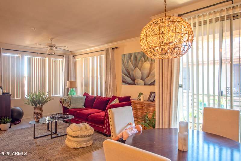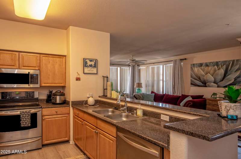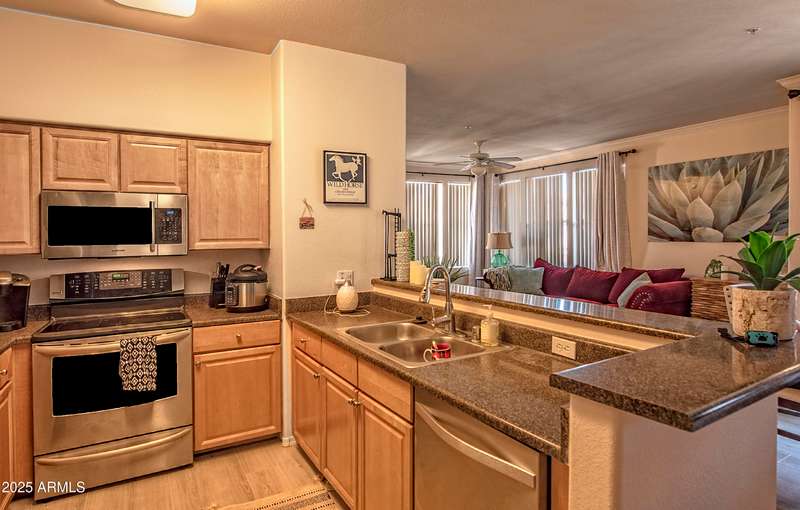 Highly sought after Venu at Grayhawk. Recently updated 1 bedroom unit with breakfast bar, dining area, balcony, work station, and master walk in closet. New vinyl plank flooring, new dishwasher, and new washer and dryer. Unit has attached 1 car garage and a designated parking spot(this was a premium, not all units have this!) Awesome community amenities including community pool and spa, Club House, BBQ Grills, fitness center, movie theater, game room, concierge, community chef, walking paths, children's playground, and dog park.