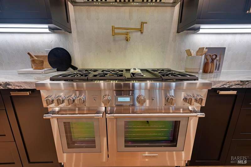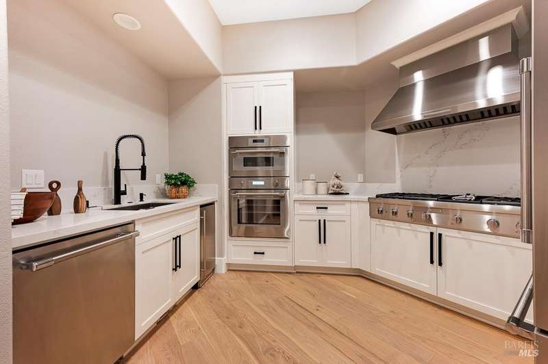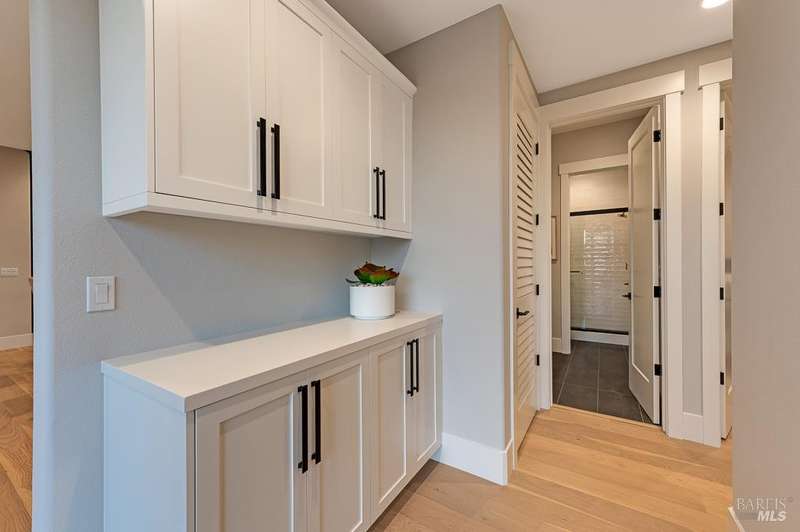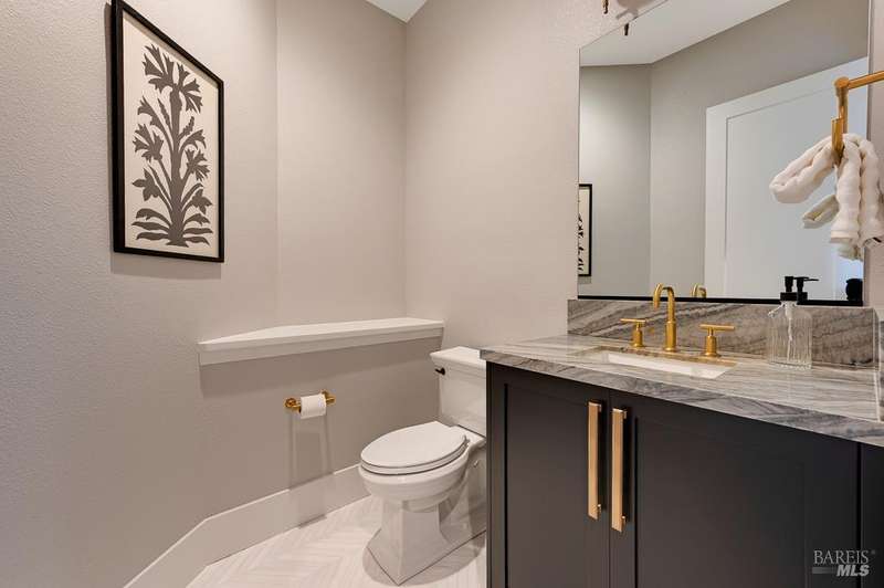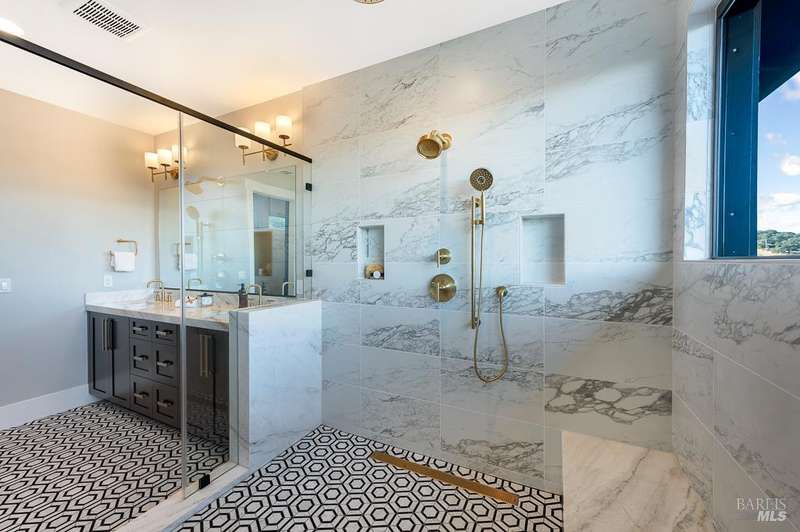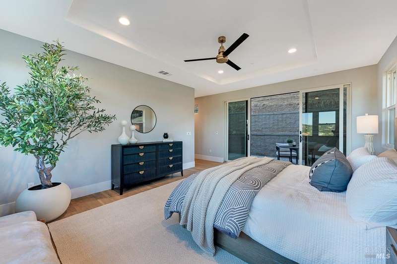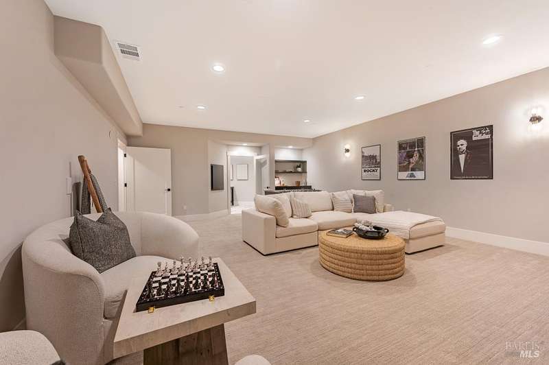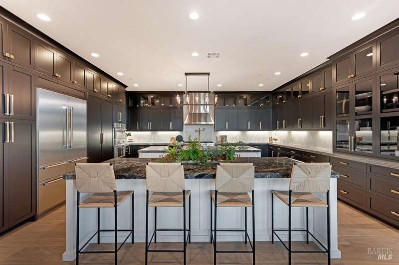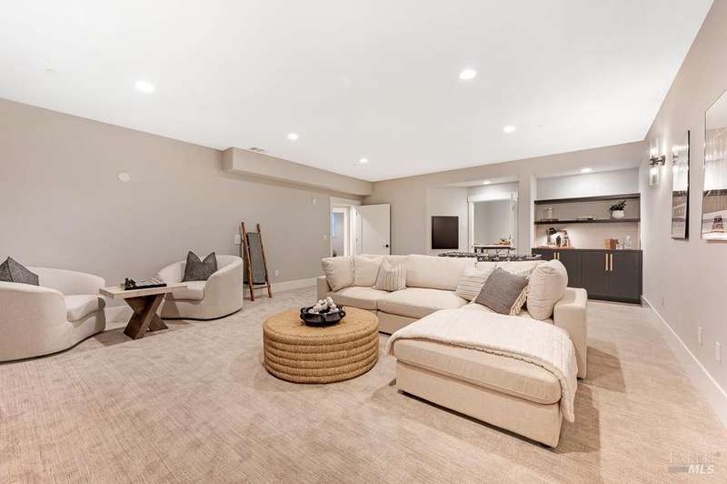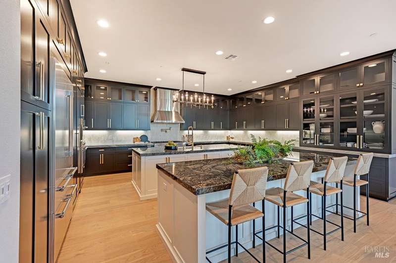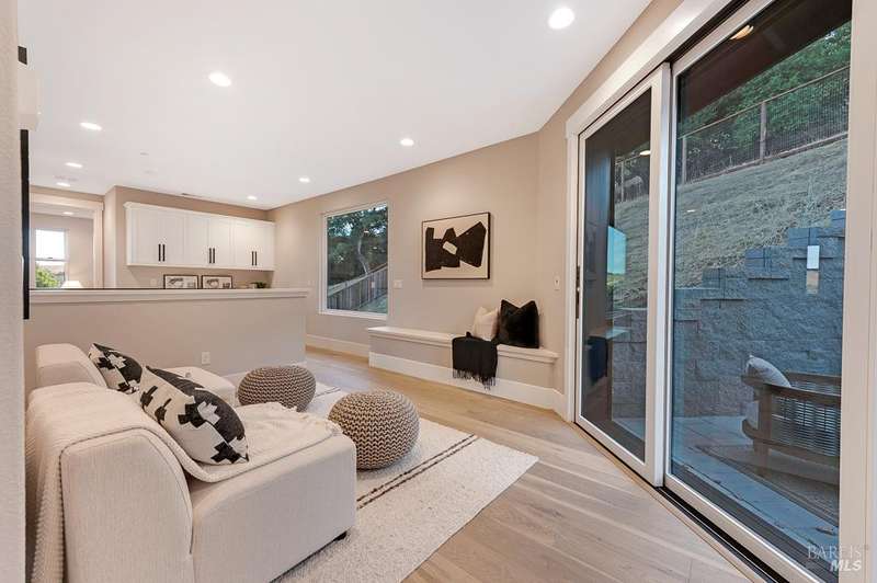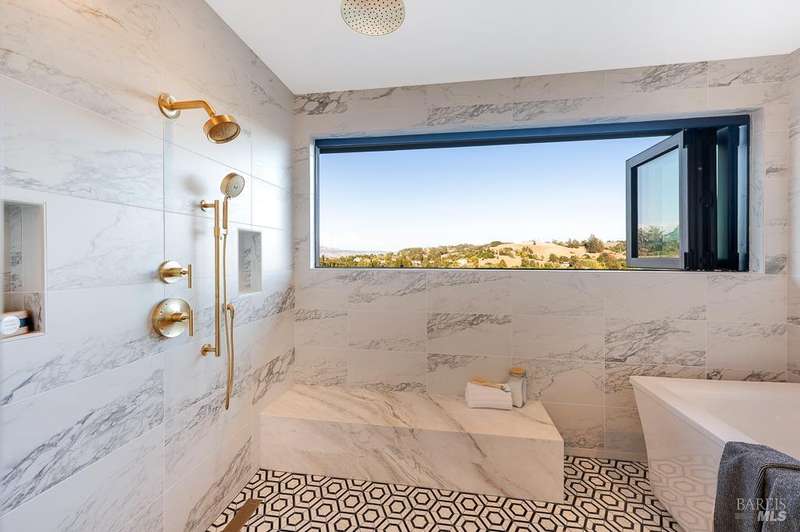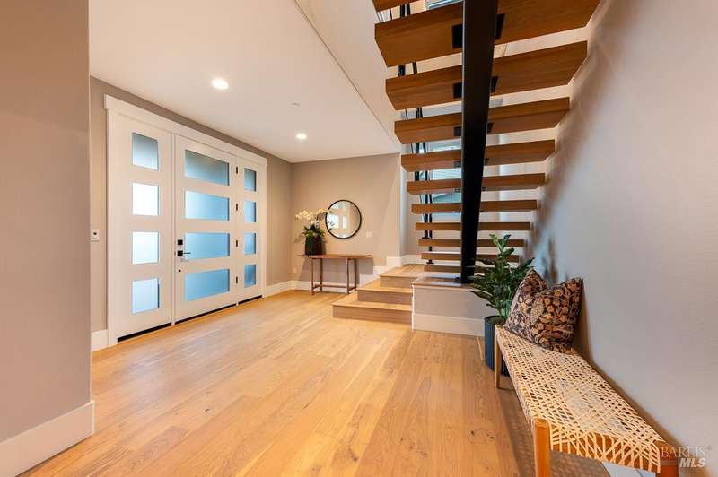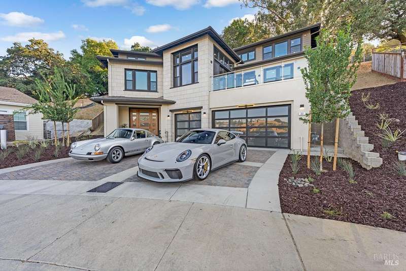 Discover a beautifully designed home in the heart of Petaluma, just 1.5 miles from downtown. This newly constructed tri-level residence blends modern conveniences with thoughtful design, offering stunning Eastern views from every angle. Upon entry, the light-filled atrium and floating staircase set the tone. The lower level features a home gym, locker room, 12-seat theater/game room, and a wine room with a dumbwaiter for easy access to the scullery kitchen. A mudroom off the 5-car garage includes a convenient pet wash station. The main level boasts vaulted ceilings, a spacious office, two bedrooms, and a chef-inspired kitchen with two large islands, Thermador appliances, and two-tone cabinetry. A secondary scullery kitchen caters to entertaining needs, and the dining area leads to an outdoor deck that connects to the surrounding views. Upstairs, find two more bedrooms and a luxurious Owner's Passage Suite, with panoramic windows in the primary shower offering breathtaking views. 22 Oak Knoll is a one-of-a-kind home, blending modern luxury with practicality in Petaluma. www.22oakknoll.com