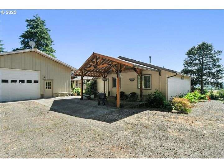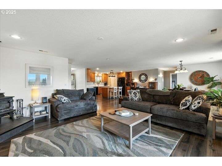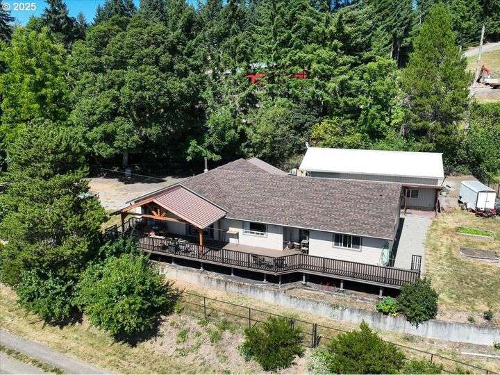 Beautiful sprawling single story home in Kalama with Columbia River views. This spacious 3 bed, 2.5 bath home features a office, large kitchen with island, walk-in pantry, cozy wood burning fireplace and open living. New roof and gutters provide peace of mind. Enjoy year-round outdoor living on the covered deck. Gated and fully fenced, the property includes a shop with guest quarters and full bath, barn, fenced for animals, fruit trees and raised garden beds. Peaceful, private and just minutes from town and I5 access!