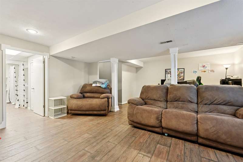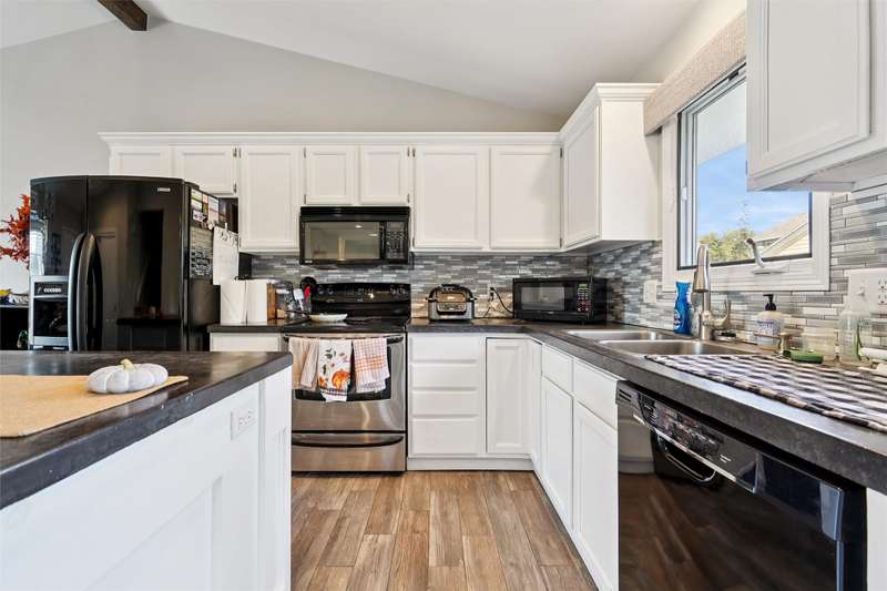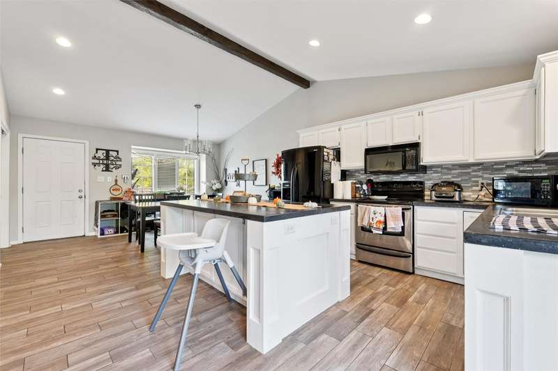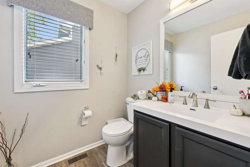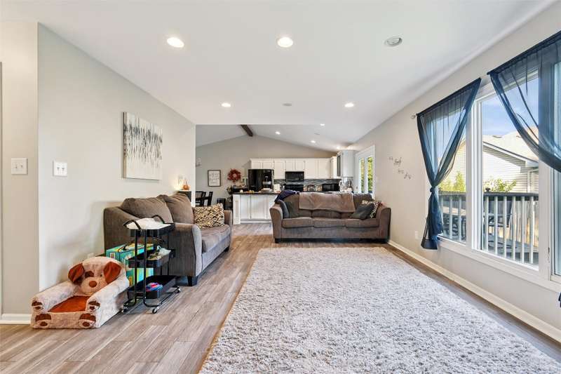 A beautiful 3 bedroom, 2 1/2 bath, over 2000 sf home that has been Completely Updated and Remodeled. A modern style home that is move in ready on the North/West side of Ankeny! Home sits on a huge corner lot on a quite U-shaped neighborhood with no through traffic. New 50-year Dutchlap vinyl siding and brick accents. Large front yard with fenced in backyard. Walking into the home, you will be greeted with a beautiful cathedral vaulted ceiling with a custom-made accent beam. The home has been remodeled into an open concept floor plan to maximize functionality. Spacious eat-in kitchen sports clean white cabinets with dimmable above and below cabinet lighting, sleek stainless steel/black appliances (included), and huge center island. Kitchen is also equipped with custom-made durable concrete countertops and modern porcelain backsplash. The entire main floor (800sft) has durable wood-look porcelain tile, refinished white trim, and large windows. A large family room with a real wood-burning brick fireplace and main floor guest bathroom. Heading upstairs, you will immediately enjoy the thick plush stain-resistant carpet on the entire upper floor. The 2nd floor has two guest bedrooms, guest bathroom and a large master suite. Both full bathrooms have modern porcelain hexagonal tile (with heated floors!), cultured marbled countertops, and large custom-made mirrors. The lower level has been remodeled to include an extra family room-or bdrm, laundry rm, and storage closet/furnace rm.
