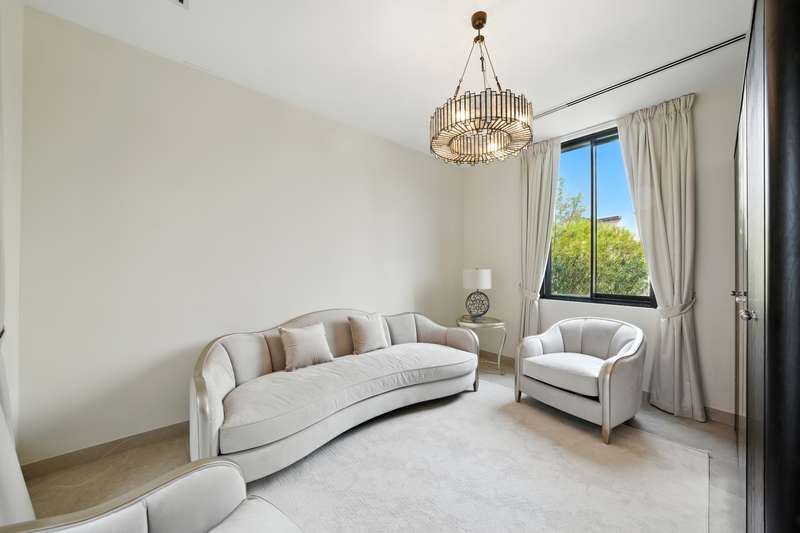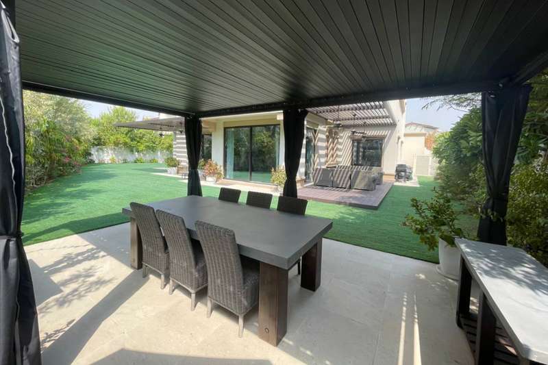 Betterhomes is delighted to present this stunning five-bedroom Type 4 villa in the prestigious Arabian Ranches community, offering a unique blend of luxury, comfort, and practicality. Highlights - Backing directly onto Ranches 2 park offering racket sports courts, play park for kids and playing field. - Backing Ranches 2 leisure center. - Full AMC with unlimited callouts included, ensuring hassle-free maintenance. - Fully furnished, with interiors featuring premium pieces from Bloomingdale’s and Pottery Barn. - Gardener costs included, allowing for beautifully maintained outdoor spaces. - Elegant extensions to both the dining room and living room, enhancing the home’s spacious layout. Property Features - 6 Bedrooms - 2 upstairs bedrooms with walk-in wardrobes - Nanny’s room & Maid’s room. - Dining room, breakfast area, spacious living room, upstairs family/study room, and downstairs study/living space. - Siemens appliances included: microwave, oven, and dishwasher. - Plot Size: 8,872.26 Sq. ft (824 Sq. m). - BUA (Built-Up Area): 5,368 Sq. ft (499 Sq. m). - Outdoor pagola area. Ref: VI746562 For any questions or to arrange a viewing, feel free to reach out. We look forward to hearing from you.