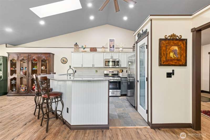 Beautifully Updated & Open Concept on a Large Corner Lot! This 1-Story home has 3 bdrms, 2 full baths & $80K in Seller updates in last 3+years include NEW furnace, windows, appliances (incl washer & dryer), Quartz counters, painted cabinetry, 2 Mini-Splits, en-suite tub, recessed lighting, Ext Paint, oversized entrance step & landing entrances, fencing & more! Plus cathedral ceilings, wood wrap windows, skylights, wainscoting, vinyl wood flooring, pantry, walk in closet, gas fireplace & a lovely covered deck for year round outdoor living. Garage mezzanine & shed provide extra storage space. Great proximity to the nearby future development, Lakepoint Urban Village, and all the shopping & restaurants in Covington and Maple Valley. Must See!