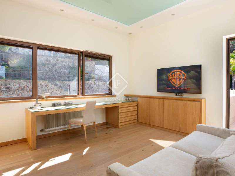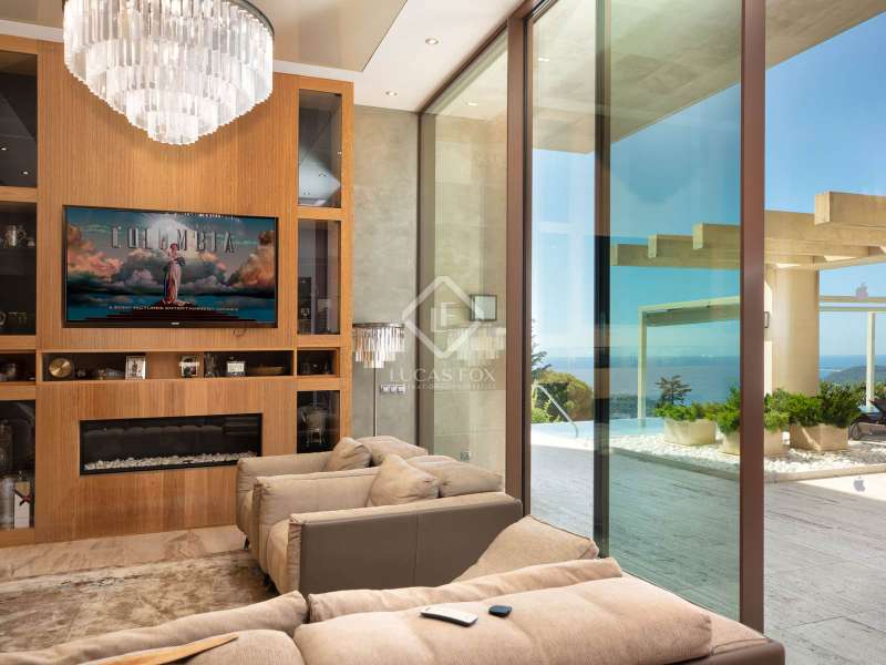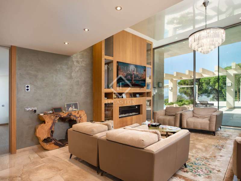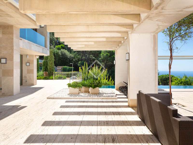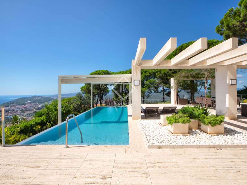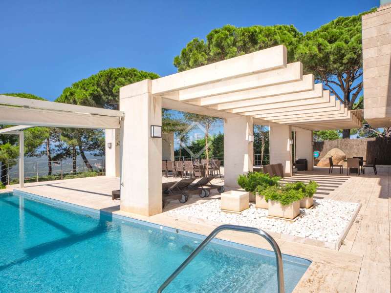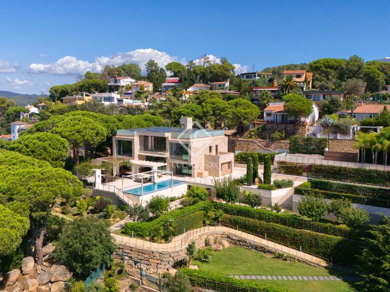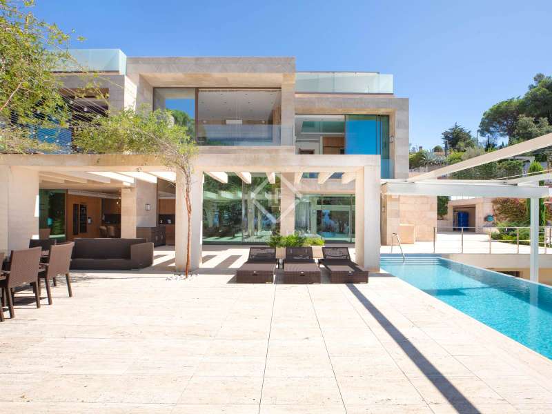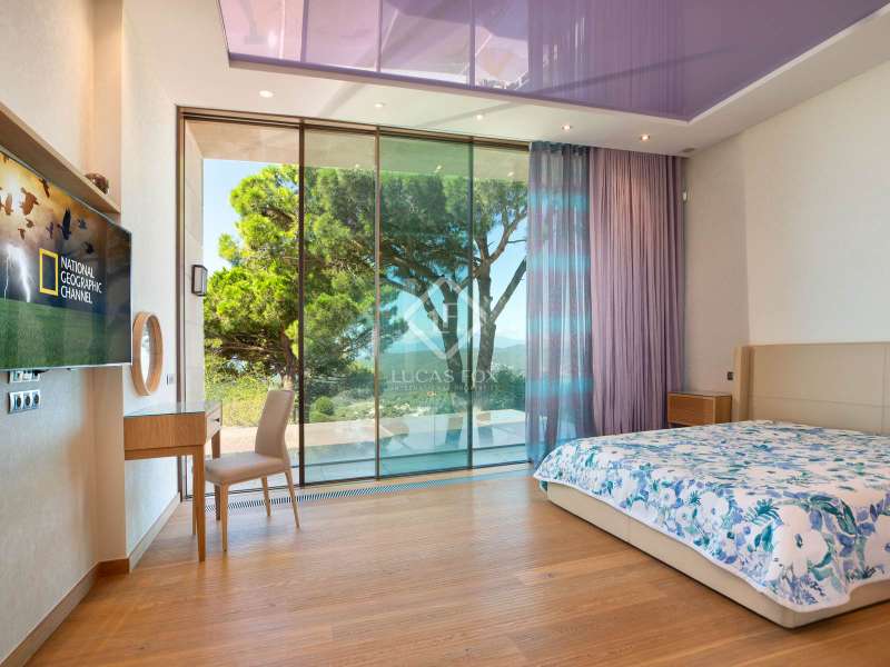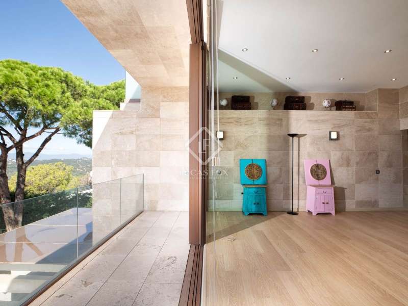 This majestic luxury villa from 2016 in an impeccable condition is located in the exclusive Roca Grossa development. It has a constructed area of 681 m² on three plots that together cover 2374 m². It stands out for its modern design, top quality materials and perfect integration with the natural environment, where we enjoy spectacular views of the sea and the mountains. Layout of the villa The property is divided into three levels that optimize functionality and comfort. Ground floor Upon entering the property, an elegant entrance hall leads us to a spacious living- dining room living room that connects to a large terrace. This exterior space is perfect for relaxing while enjoying the extraordinary sea views. The state-of-the-art kitchen is equipped with high-end appliances and opens onto the living room to create an open-plan and modern atmosphere. The doors that connect the living room and kitchen to the terrace operate automatically by remote control. On this same floor, we find a luxurious suite with a dressing room, private bathroom and access to a separate terrace. In addition, we have an office, a utility room and a guest toilet. First floor The upper level houses five spacious bedrooms, including three suites with sea and mountain views and access to private terraces. There are also three full bathrooms decorated with luxury materials, combining functionality and style. Basement: Here we see a Finnish sauna, ideal for moments of relaxation, as well as a utility room, a bathroom, several storage rooms and direct access to the Mediterranean garden . In addition, a large multipurpose room becomes the perfect space for various activities. Quality and energy efficiency The villa has been built with the highest quality materials: the façades are clad in travertine marble, the floors are made of stoneware in the communal areas and parquet in the bedrooms, and the rooms have underfloor heating and air conditioning using aerothermics. Thanks to its excellent insulation, the 33 solar panels installed and the water well, the house is self-sufficient, which guarantees low and efficient energy consumption. Garden and outdoors The Mediterranean garden surrounds the villa and is adapted with accessible paths for people with reduced mobility. From almost every point of the property you can enjoy the sea views. The swimming pool, equipped with decorative lighting and a retractable awning, represents the perfect space to relax. In addition, the barbecue area and summer kitchen are equipped with a gas stove, teppanyaki, wok and a professional Josper oven, making the garden an ideal area to enjoy the outdoors. Extras and amenities - Orona Elevator that connects the four levels of the house. - Two-car garage with automatic door and parking space for up to six additional vehicles. - Jacuzzi and swimming pool with massage jets and decorative lighting. - Home automation system to control automatic blinds and doors. - Automatic irrigation in the garden. - Video surveillance and alarm system. - Luxury furniture from brands such as Roche Bobois and Miele kitchenware.