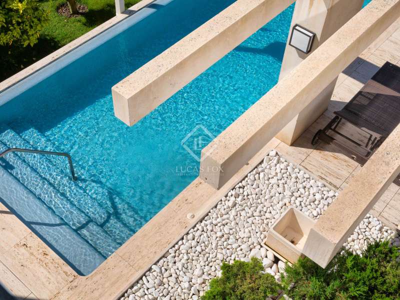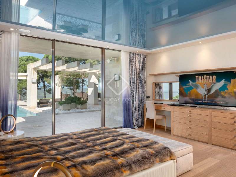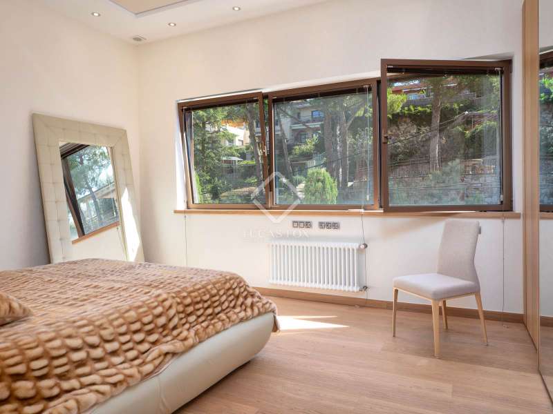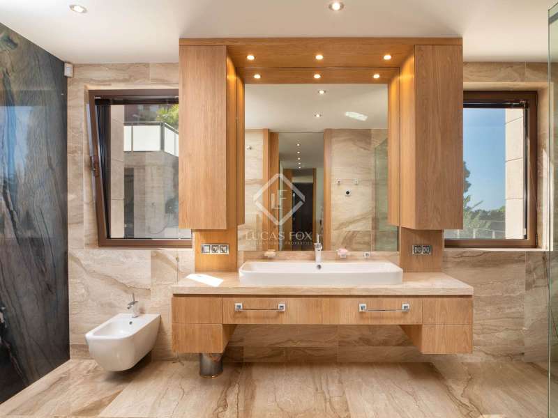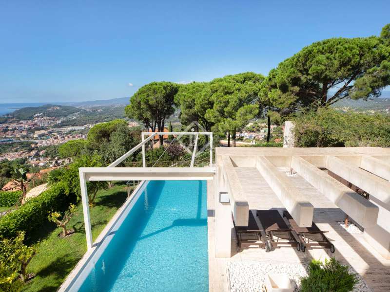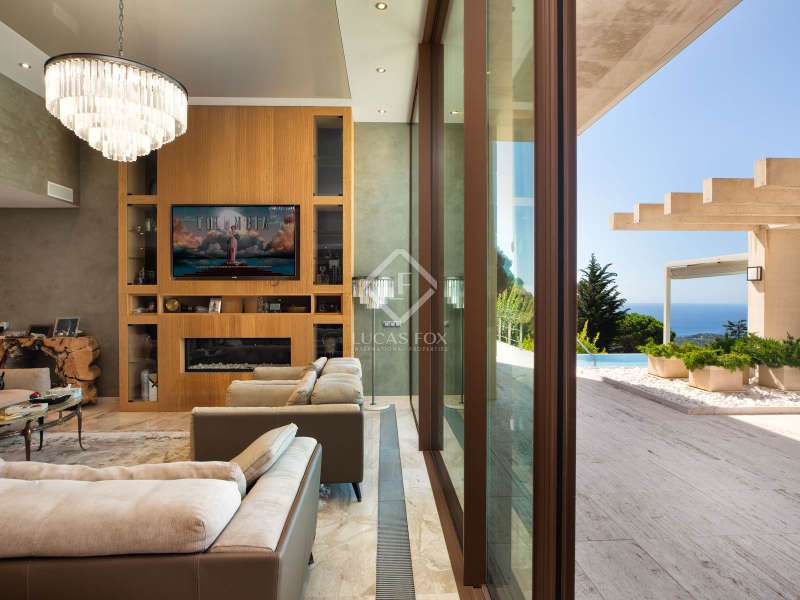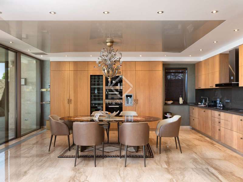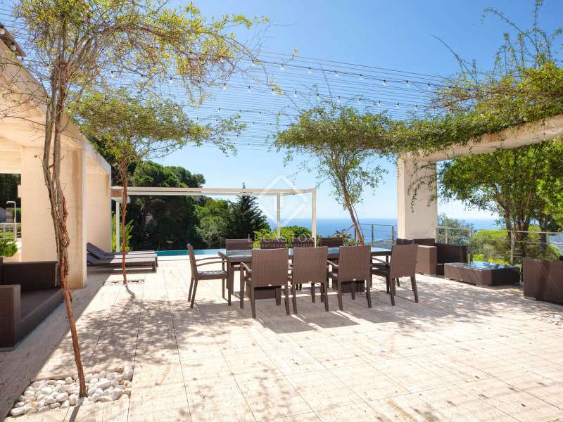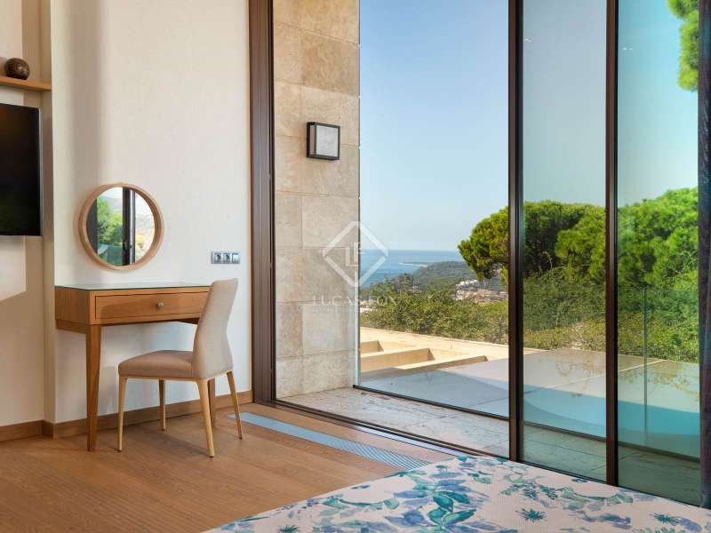 This majestic luxury villa from 2016 in an impeccable condition is located in the exclusive Roca Grossa development. It has a constructed area of 681 m² on three plots that together cover 2374 m². It stands out for its modern design, top quality materials and perfect integration with the natural environment, where we enjoy spectacular views of the sea and the mountains. Layout of the villa The property is divided into three levels that optimize functionality and comfort. Ground floor Upon entering the property, an elegant entrance hall leads us to a spacious living- dining room living room that connects to a large terrace. This exterior space is perfect for relaxing while enjoying the extraordinary sea views. The state-of-the-art kitchen is equipped with high-end appliances and opens onto the living room to create an open-plan and modern atmosphere. The doors that connect the living room and kitchen to the terrace operate automatically by remote control. On this same floor, we find a luxurious suite with a dressing room, private bathroom and access to a separate terrace. In addition, we have an office, a utility room and a guest toilet. First floor The upper level houses five spacious bedrooms, including three suites with sea and mountain views and access to private terraces. There are also three full bathrooms decorated with luxury materials, combining functionality and style. Basement: Here we see a Finnish sauna, ideal for moments of relaxation, as well as a utility room, a bathroom, several storage rooms and direct access to the Mediterranean garden . In addition, a large multipurpose room becomes the perfect space for various activities. Quality and energy efficiency The villa has been built with the highest quality materials: the façades are clad in travertine marble, the floors are made of stoneware in the communal areas and parquet in the bedrooms, and the rooms have underfloor heating and air conditioning using aerothermics. Thanks to its excellent insulation, the 33 solar panels installed and the water well, the house is self-sufficient, which guarantees low and efficient energy consumption. Garden and outdoors The Mediterranean garden surrounds the villa and is adapted with accessible paths for people with reduced mobility. From almost every point of the property you can enjoy the sea views. The swimming pool, equipped with decorative lighting and a retractable awning, represents the perfect space to relax. In addition, the barbecue area and summer kitchen are equipped with a gas stove, teppanyaki, wok and a professional Josper oven, making the garden an ideal area to enjoy the outdoors. Extras and amenities - Orona Elevator that connects the four levels of the house. - Two-car garage with automatic door and parking space for up to six additional vehicles. - Jacuzzi and swimming pool with massage jets and decorative lighting. - Home automation system to control automatic blinds and doors. - Automatic irrigation in the garden. - Video surveillance and alarm system. - Luxury furniture from brands such as Roche Bobois and Miele kitchenware.