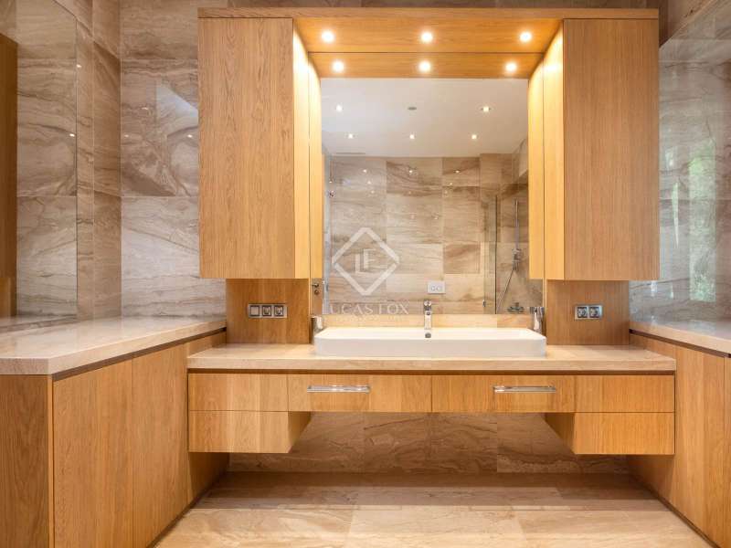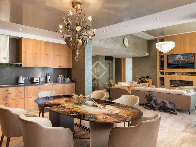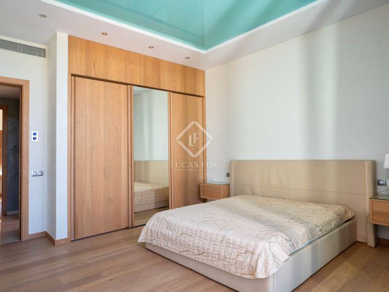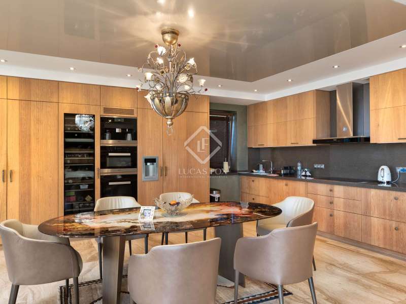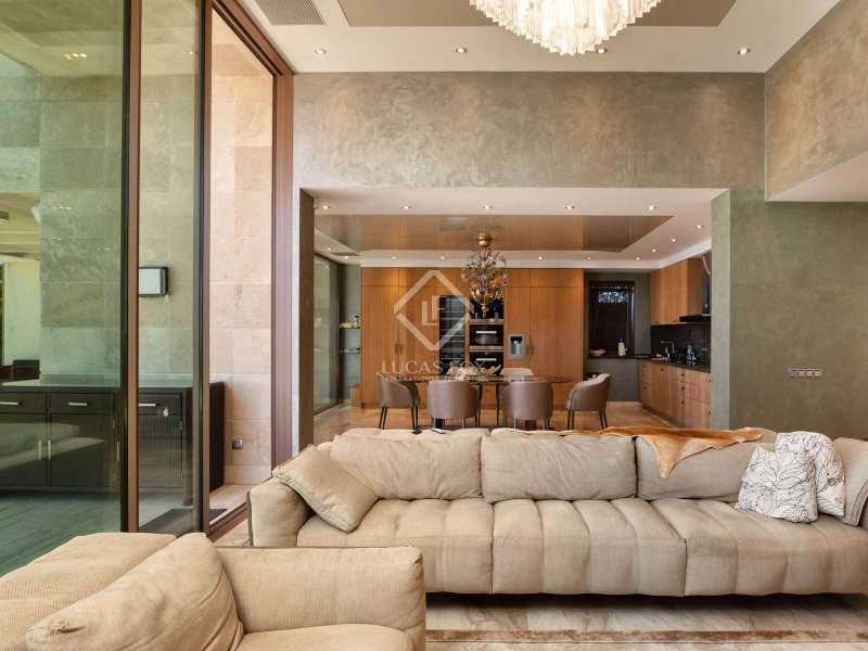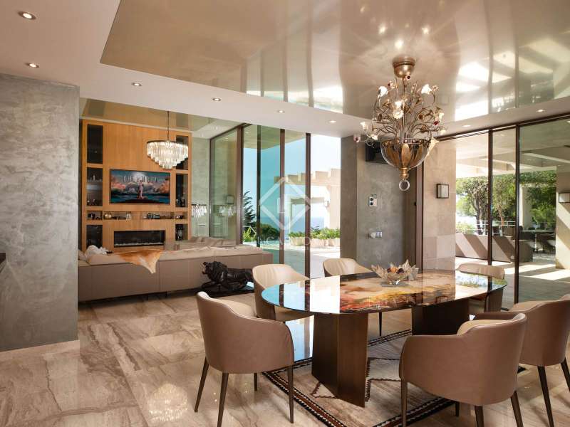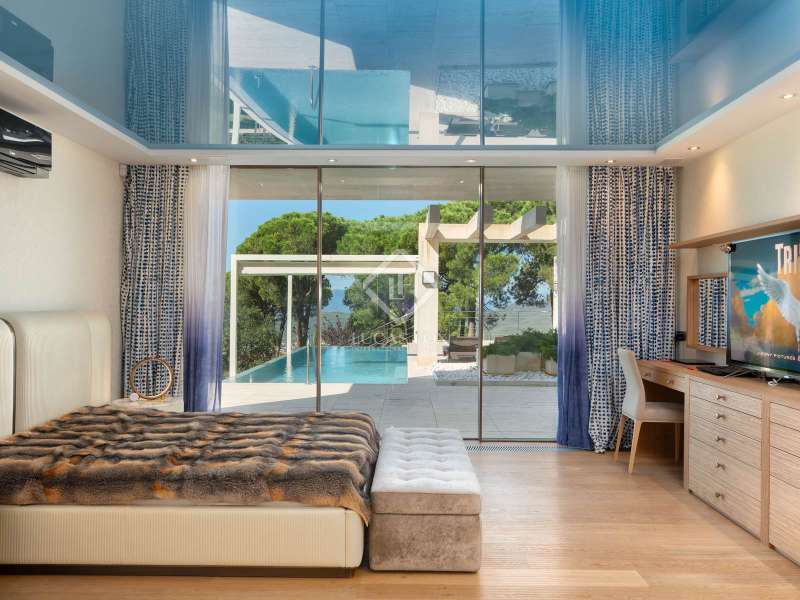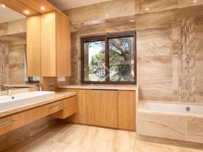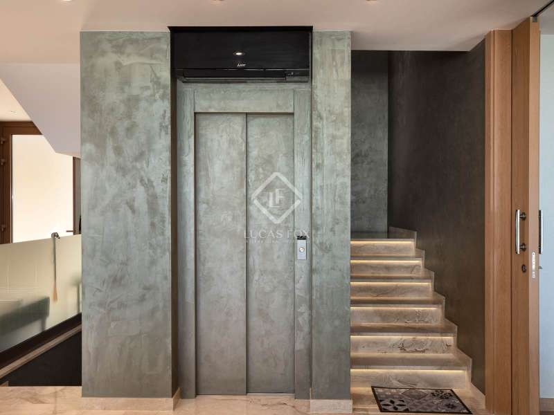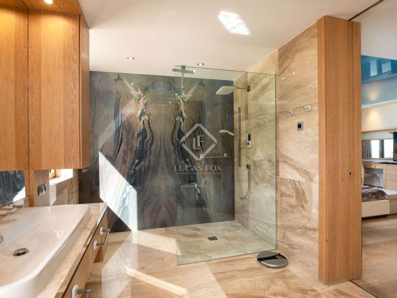 This majestic luxury villa from 2016 in an impeccable condition is located in the exclusive Roca Grossa development. It has a constructed area of 681 m² on three plots that together cover 2374 m². It stands out for its modern design, top quality materials and perfect integration with the natural environment, where we enjoy spectacular views of the sea and the mountains. Layout of the villa The property is divided into three levels that optimize functionality and comfort. Ground floor Upon entering the property, an elegant entrance hall leads us to a spacious living- dining room living room that connects to a large terrace. This exterior space is perfect for relaxing while enjoying the extraordinary sea views. The state-of-the-art kitchen is equipped with high-end appliances and opens onto the living room to create an open-plan and modern atmosphere. The doors that connect the living room and kitchen to the terrace operate automatically by remote control. On this same floor, we find a luxurious suite with a dressing room, private bathroom and access to a separate terrace. In addition, we have an office, a utility room and a guest toilet. First floor The upper level houses five spacious bedrooms, including three suites with sea and mountain views and access to private terraces. There are also three full bathrooms decorated with luxury materials, combining functionality and style. Basement: Here we see a Finnish sauna, ideal for moments of relaxation, as well as a utility room, a bathroom, several storage rooms and direct access to the Mediterranean garden . In addition, a large multipurpose room becomes the perfect space for various activities. Quality and energy efficiency The villa has been built with the highest quality materials: the façades are clad in travertine marble, the floors are made of stoneware in the communal areas and parquet in the bedrooms, and the rooms have underfloor heating and air conditioning using aerothermics. Thanks to its excellent insulation, the 33 solar panels installed and the water well, the house is self-sufficient, which guarantees low and efficient energy consumption. Garden and outdoors The Mediterranean garden surrounds the villa and is adapted with accessible paths for people with reduced mobility. From almost every point of the property you can enjoy the sea views. The swimming pool, equipped with decorative lighting and a retractable awning, represents the perfect space to relax. In addition, the barbecue area and summer kitchen are equipped with a gas stove, teppanyaki, wok and a professional Josper oven, making the garden an ideal area to enjoy the outdoors. Extras and amenities - Orona Elevator that connects the four levels of the house. - Two-car garage with automatic door and parking space for up to six additional vehicles. - Jacuzzi and swimming pool with massage jets and decorative lighting. - Home automation system to control automatic blinds and doors. - Automatic irrigation in the garden. - Video surveillance and alarm system. - Luxury furniture from brands such as Roche Bobois and Miele kitchenware.