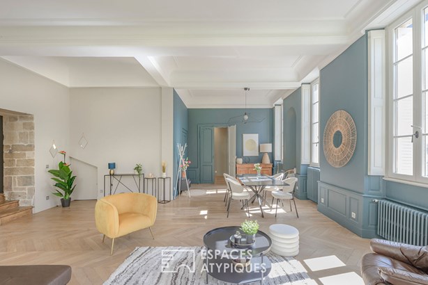 Located in a beautiful private mansion in the pedestrian area of the city of the Dukes, this beautiful apartment of 241m2 on the ground floor, was completely renovated in 2017 with high-end services.