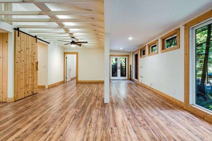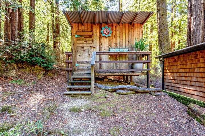 Tucked beneath the majestic redwoods and across from Austin Creek are two detached homes on 2.6+ acres. The main home features 2 bedrooms and 2 full baths with a spacious kitchen and living area. The detached studio is perfect for guests or extended family. A peaceful retreat with space to gather, barbecue, entertain, or create your own private campsite. Fully updated interiors include engineered wood flooring, custom bathroom tilework, stainless steel appliances and much more. This property is ideal for multi-family living, a vacation getaway, or rental income. Just a short drive to the ocean and minutes to the local general store and bakery.
