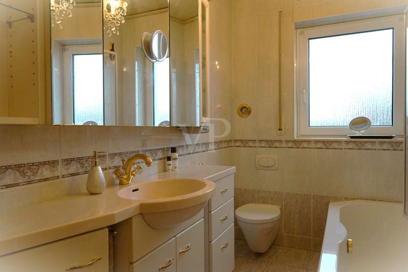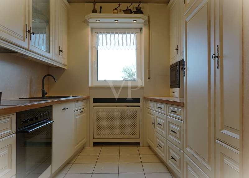 This two-family house impresses with its quiet location in a traffic-calmed side street. The elegant gate gives you access to your fenced plot with an ensemble consisting of the main house with two residential units, an outbuilding, two garages, the garden house and a sheltered covered open space. This means that even a larger family can develop freely here. The property is also ideal for multi-generational living. Over the years, money has been repeatedly invested in modernization. The property is in good condition, so you can move straight in. If you like the furnishings, you are welcome to take them over. The apartments are a pleasant size. You could also move into one and rent out the other to make financing easier. The top floor offers additional space, with a separate guest WC and two converted rooms. The basement also houses a workshop where hobbyists can store their tools. The plot is a great size, so you can let your children play here without worrying and keep your motorized pets dry. If you are not so keen on a large garden, you could also consider building a new house for yourself in the rear area and renting out the front area completely. There are plenty of design options and potential here. So arrange a viewing appointment and be inspired by the many possibilities of this property.