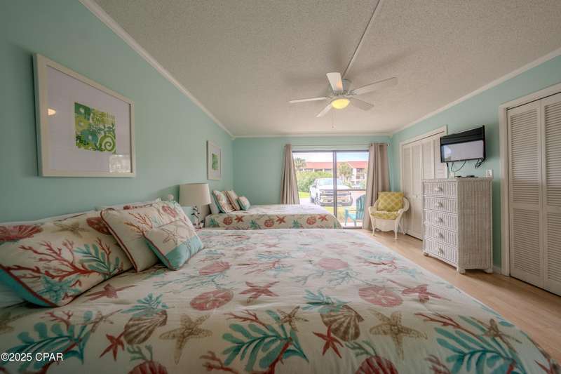 Welcome to Edgewater Villas, the community with the most amenities in all of Panama City Beach! Steps away from fenced tennis courts with pro shop, par 3 executive golf course, your choice of pools within walking distance and all the Gulfside amenites at beachside. This condo is on the ground floor, making it easy to bring bags and groceries in and out, which will be very convenient and attractive to renters. Owning an Edgewater Villa means you gain access to all the amenities Edgewater beachfront amenites include lagoon pool, Oceans restaurant (on site, beach side), a kids splash pad, a workout room, and much more! There's no better place to be than Edgewater if you're looking for an amazing experience. Big ticket items done: AC 2015, WH 2020, tile/laminate flooring throughout, master tile shower, NEW guest shower doors, NEW TVs, newer furnishings.