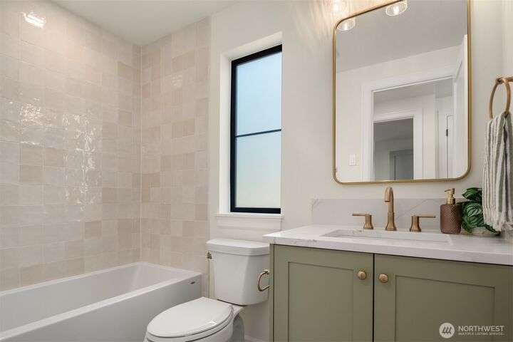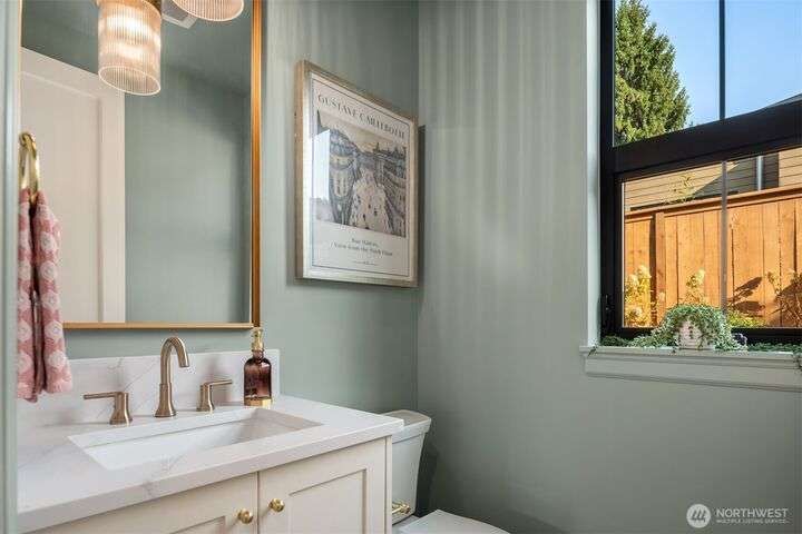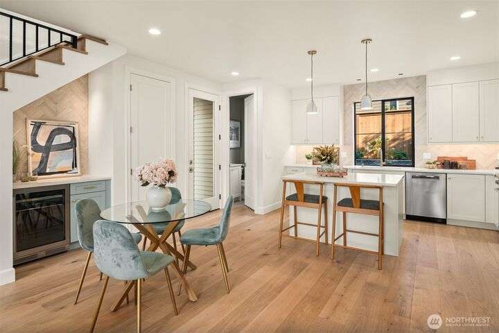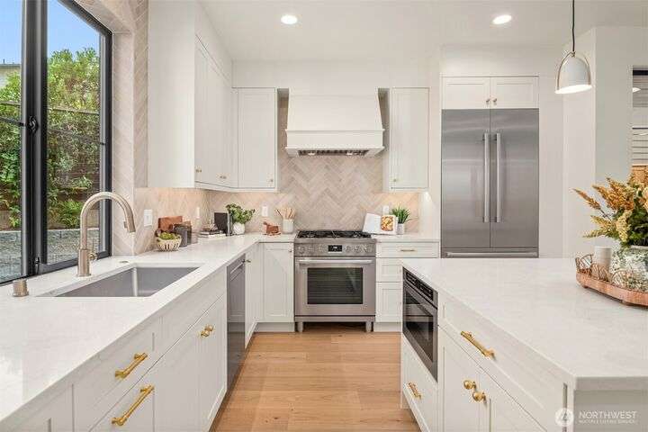 NEW MUST-SEE Cottage in West of Market! Located just a few steps from Juanita Bay Park & Boardwalk, this 2bd/2.5ba charmer by Granger & Co offers uncompromising quality & luxurious comfort with meticulously curated design. Bright & airy open concept great room boasts butlers bar and sliding doors that open to the patio & fully fenced yard. Gorgeous Chef's kitchen features quartz counters, Bedrosian tile, Belmont cabinets, & top-of-the-line appliances. Retreat upstairs to 2 bdrms w ensuite baths - and convenient laundry area. Spacious primary boasts private balcony, walk-in closet & sumptuous bathroom bathed in natural light thru vaulted ceilings & skylights with heated floors, double sinks & stunning fully-tiled shower. EC charging station.