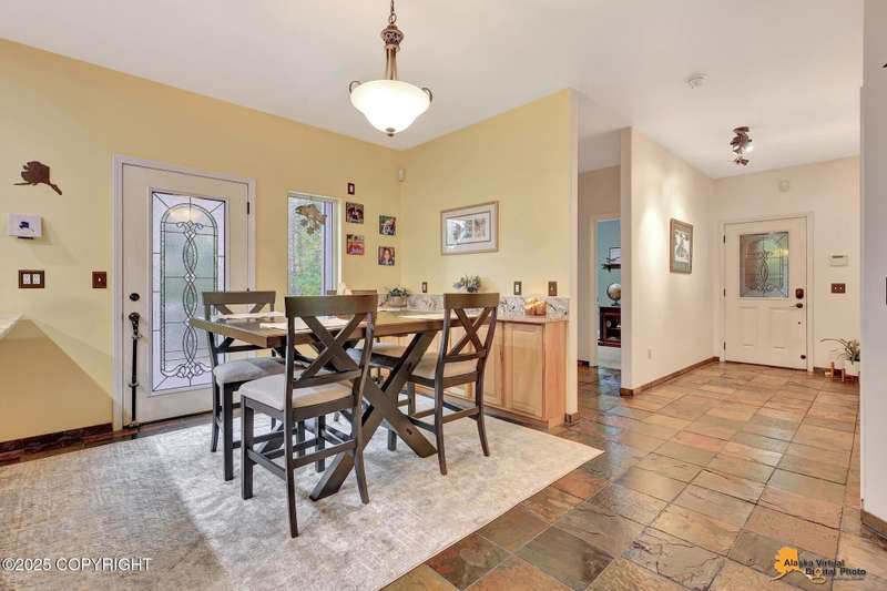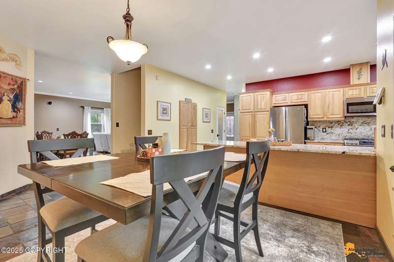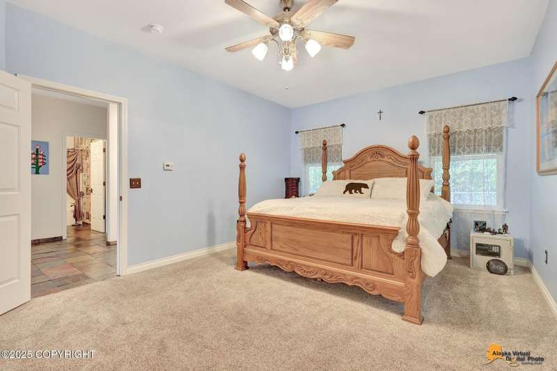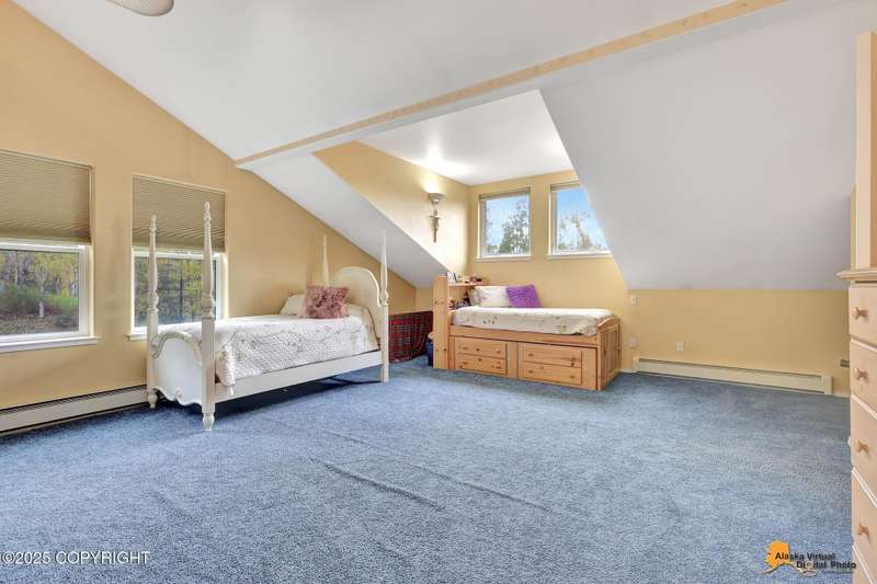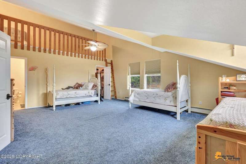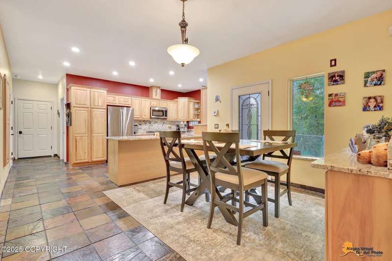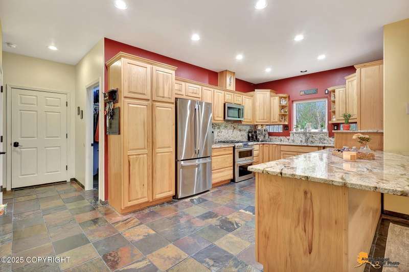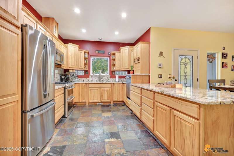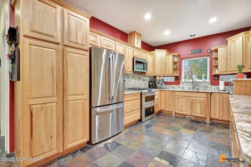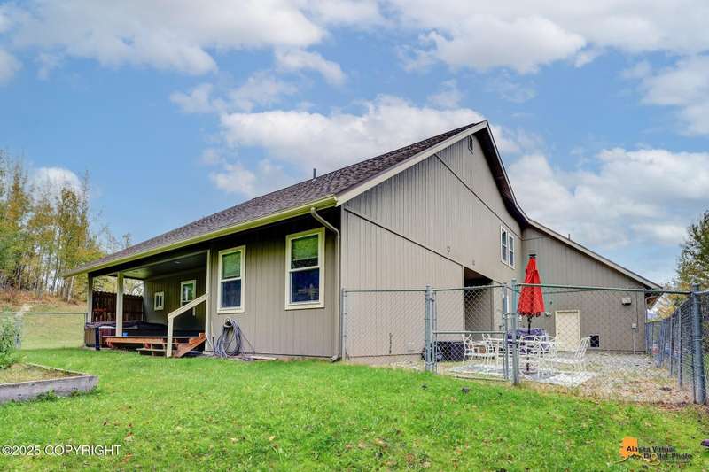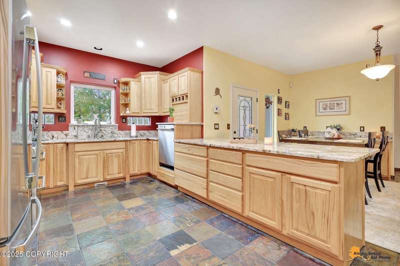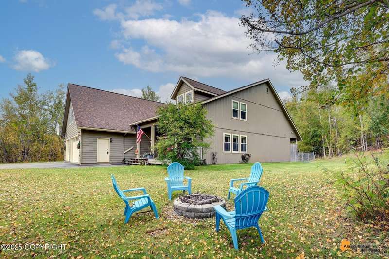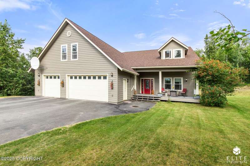 Spacious & Inviting Home on 2 Acres in the Heart of Town Welcome to a beautiful and thoughtfully designed 4-bedroom, 4-bath home nestled on 2 acres in a central location. Tucked away for privacy yet close to everything, this warm and welcoming home offers both a cozy living room and a spacious family room—ideal for everyday living and entertaining. The oversized 1,080 sq ft three- car garage gives you all the space you need for vehicles, gear, and more. Inside, you'll find custom slate tile accents, 9' ceilings, and a flexible layout with a main level primary plus a second bedroom that is a perfect guest space or office. Bedrooms 3 and 4 both include fun loft spaces perfect for play, hobbies, or a quiet reading nook. The kitchen features gorgeous hickory cabinets and a layout that's both functional and inviting. Come home and relax on the covered deck, already wired for a hot tub and glass of bubbly! Set in an unbeatable central location off Seward Meridian Parkway just 5 minutes from the Glenn Hwy, this home offers one of the best commuting spots in town with quick access to shopping, schools, and major routes while still enjoying the space and privacy of a large lot. A rare opportunity to enjoy space, comfort, and convenience all right in the middle of town.